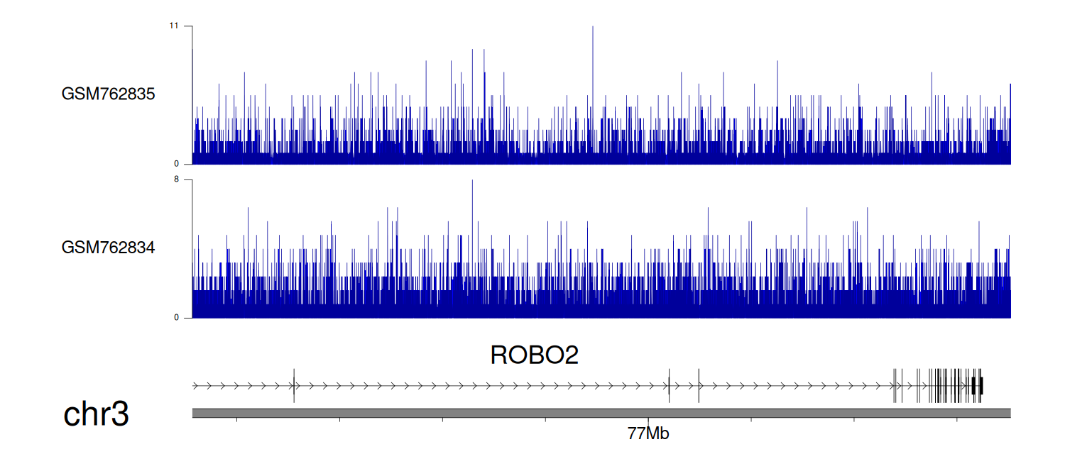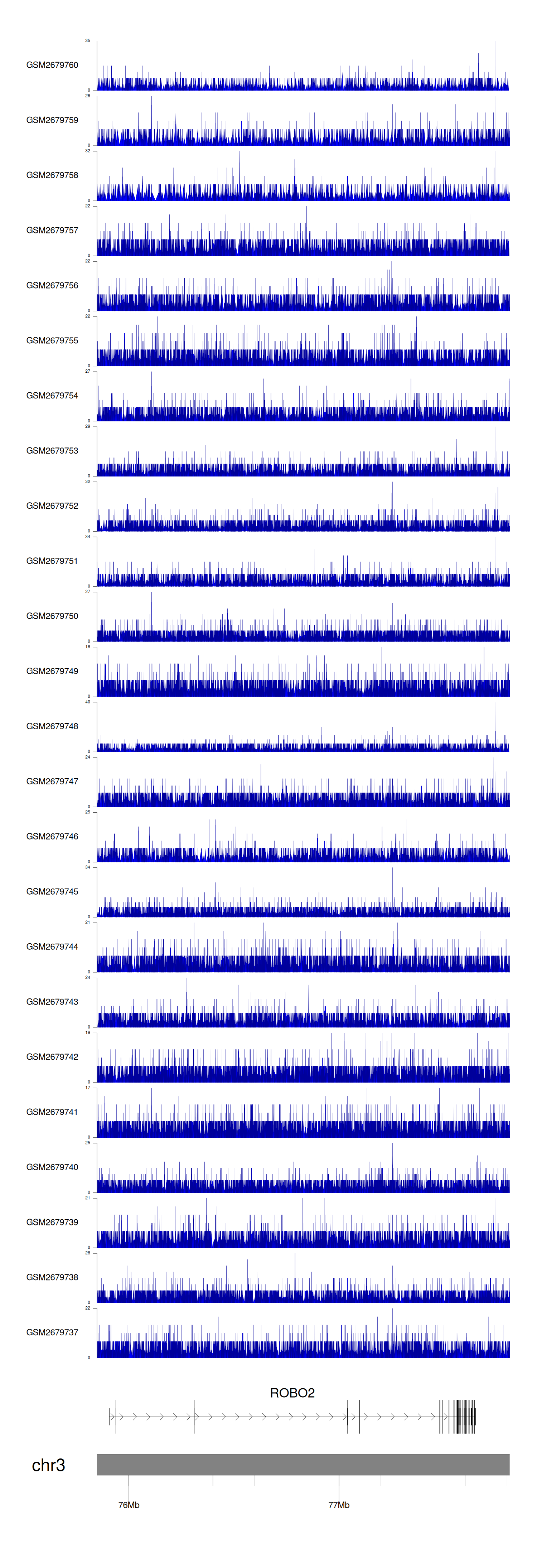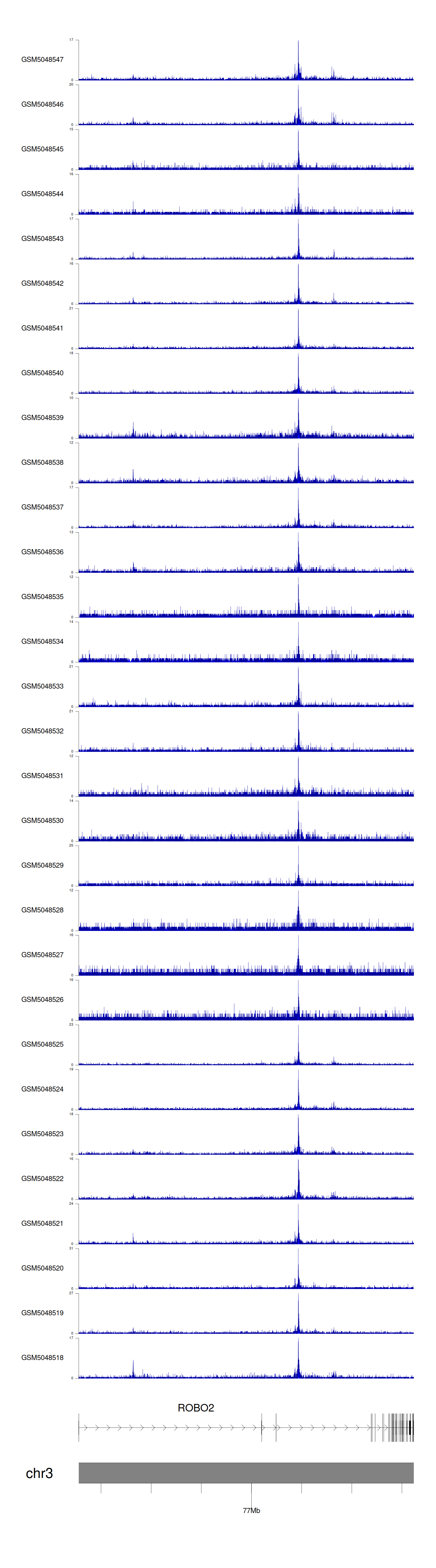 > Dataset: GSE30738 - ROBO2 peak across samples