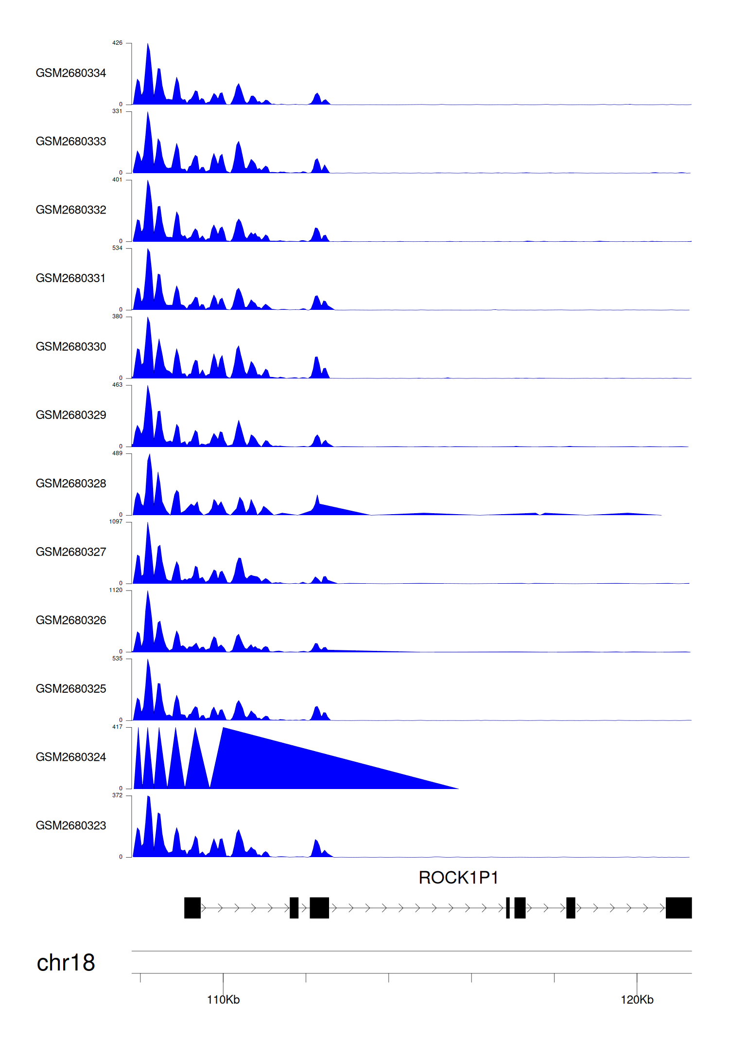 > Dataset: GSE100400 - ROCK1P1 peak across samples