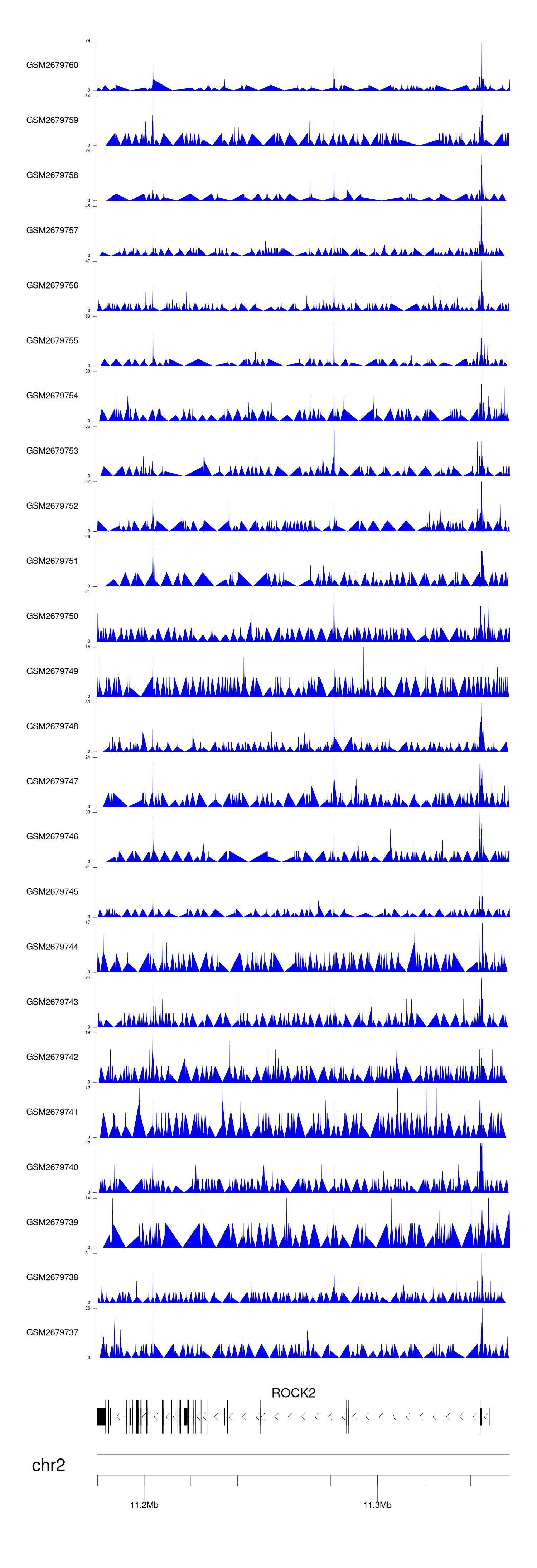 > Dataset: GSE100376 - ROCK2 peak across samples