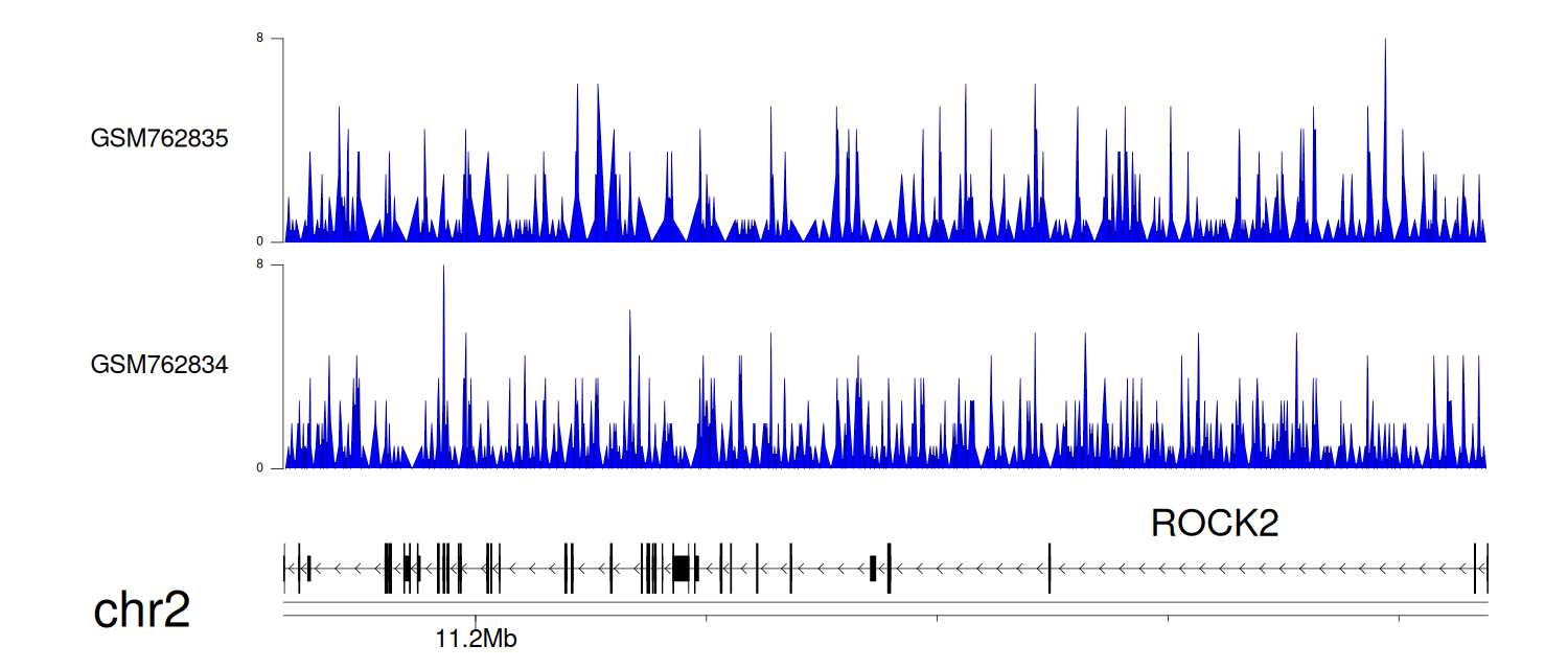 > Dataset: GSE30738 - ROCK2 peak across samples