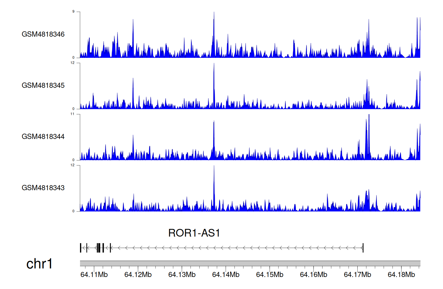 > Dataset: GSE270130 - ROR1-AS1 peak across samples