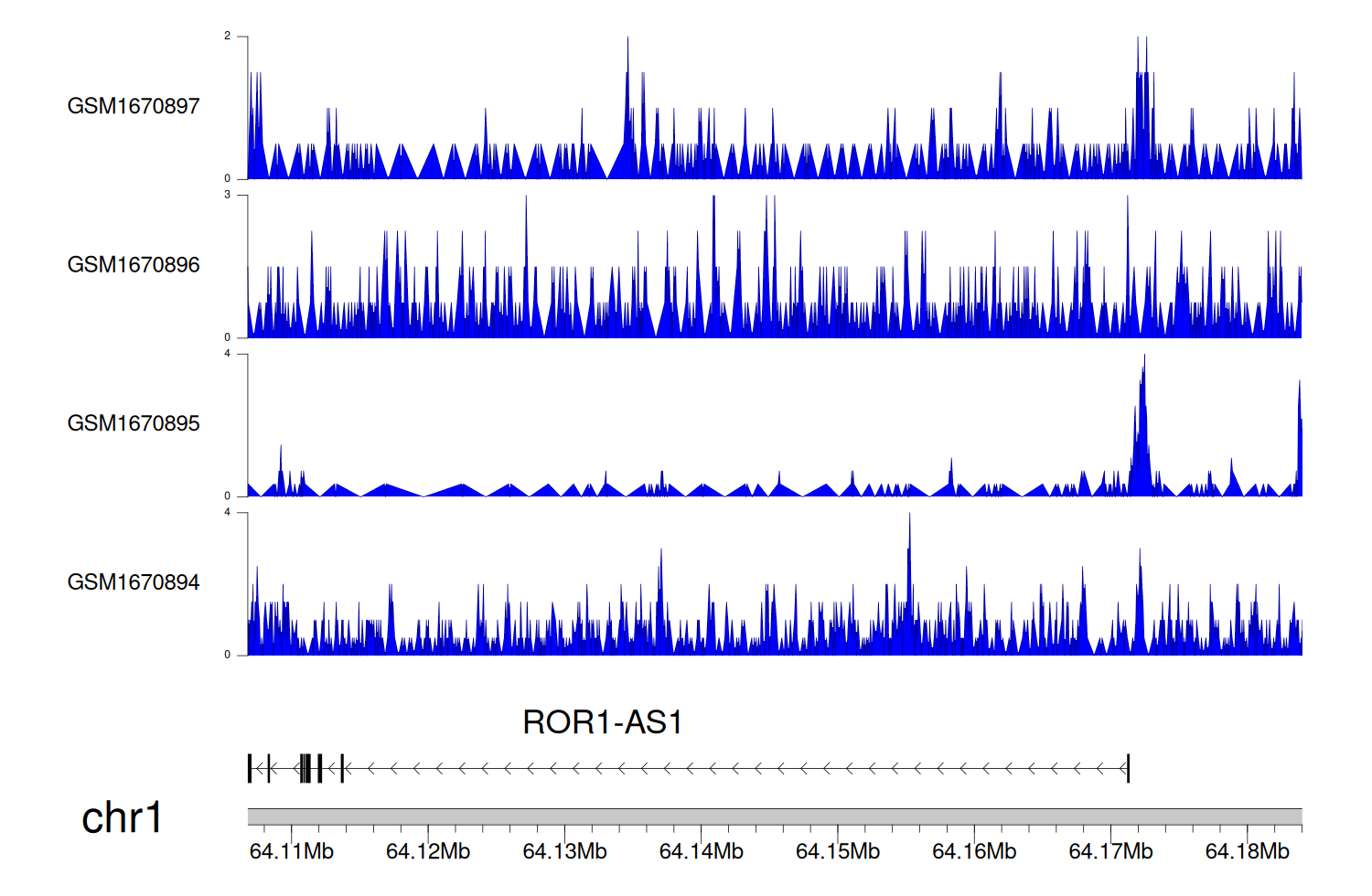 > Dataset: GSE68402 - ROR1-AS1 peak across samples