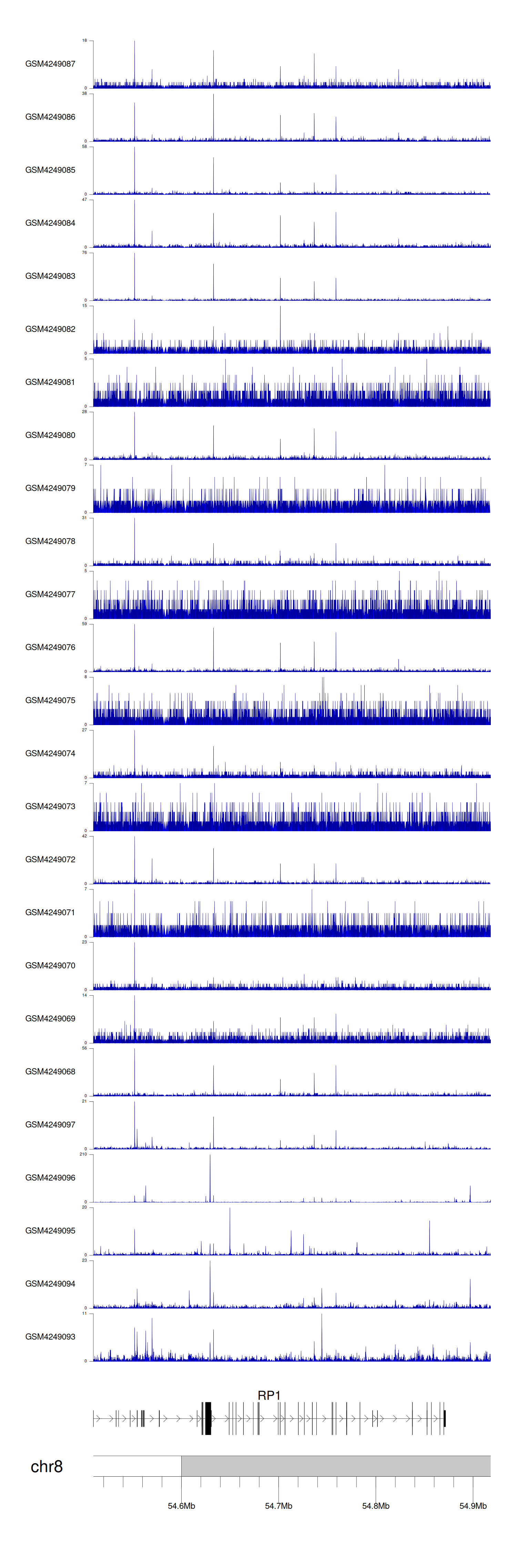 > Dataset: GSE143026 - RP1 peak across samples