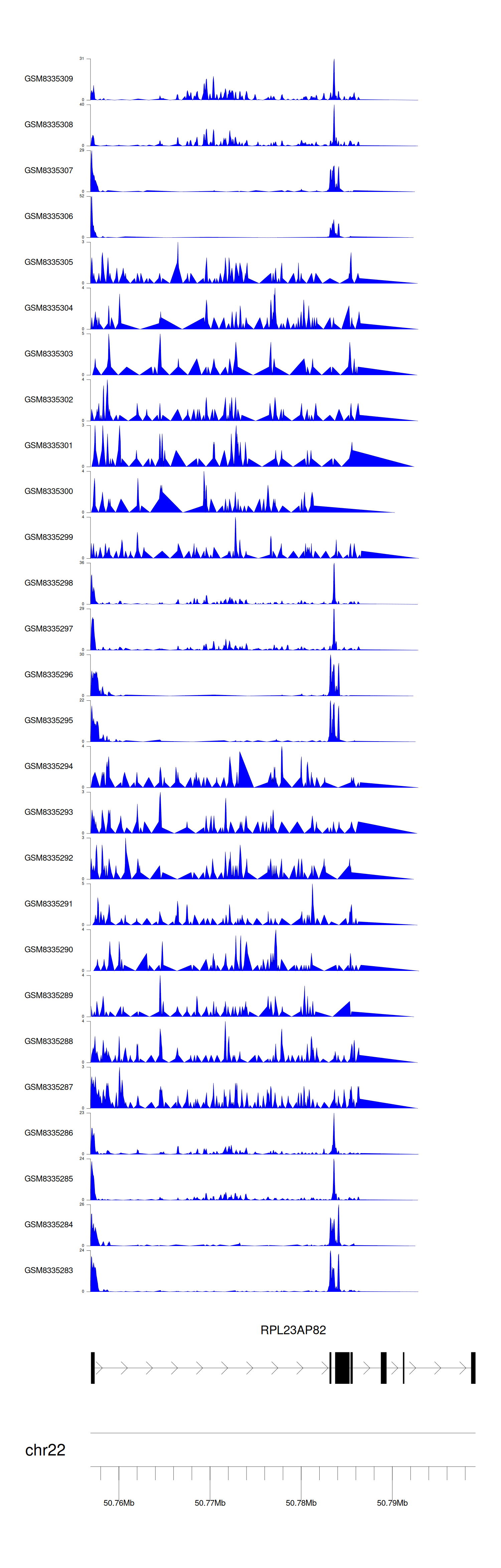 > Dataset: GSE270130 - RPL23AP82 peak across samples