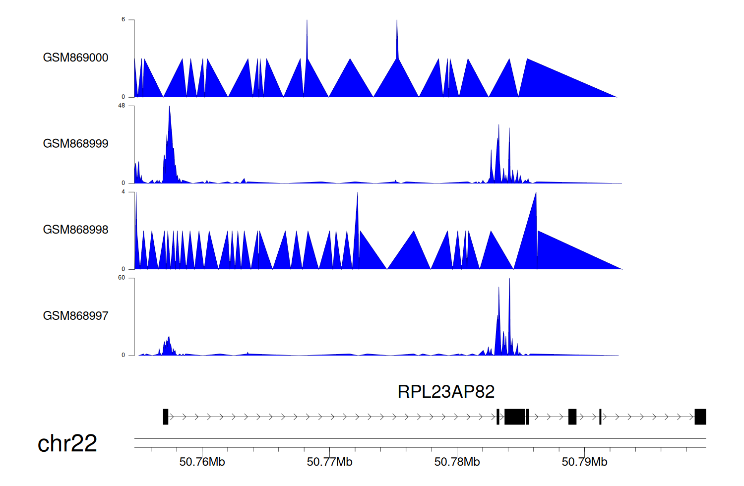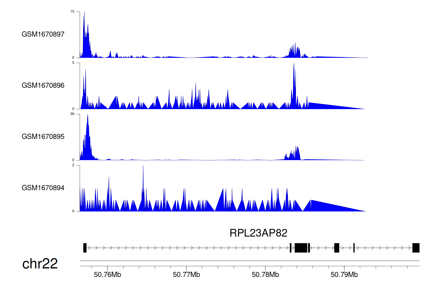 > Dataset: GSE68402 - RPL23AP82 peak across samples