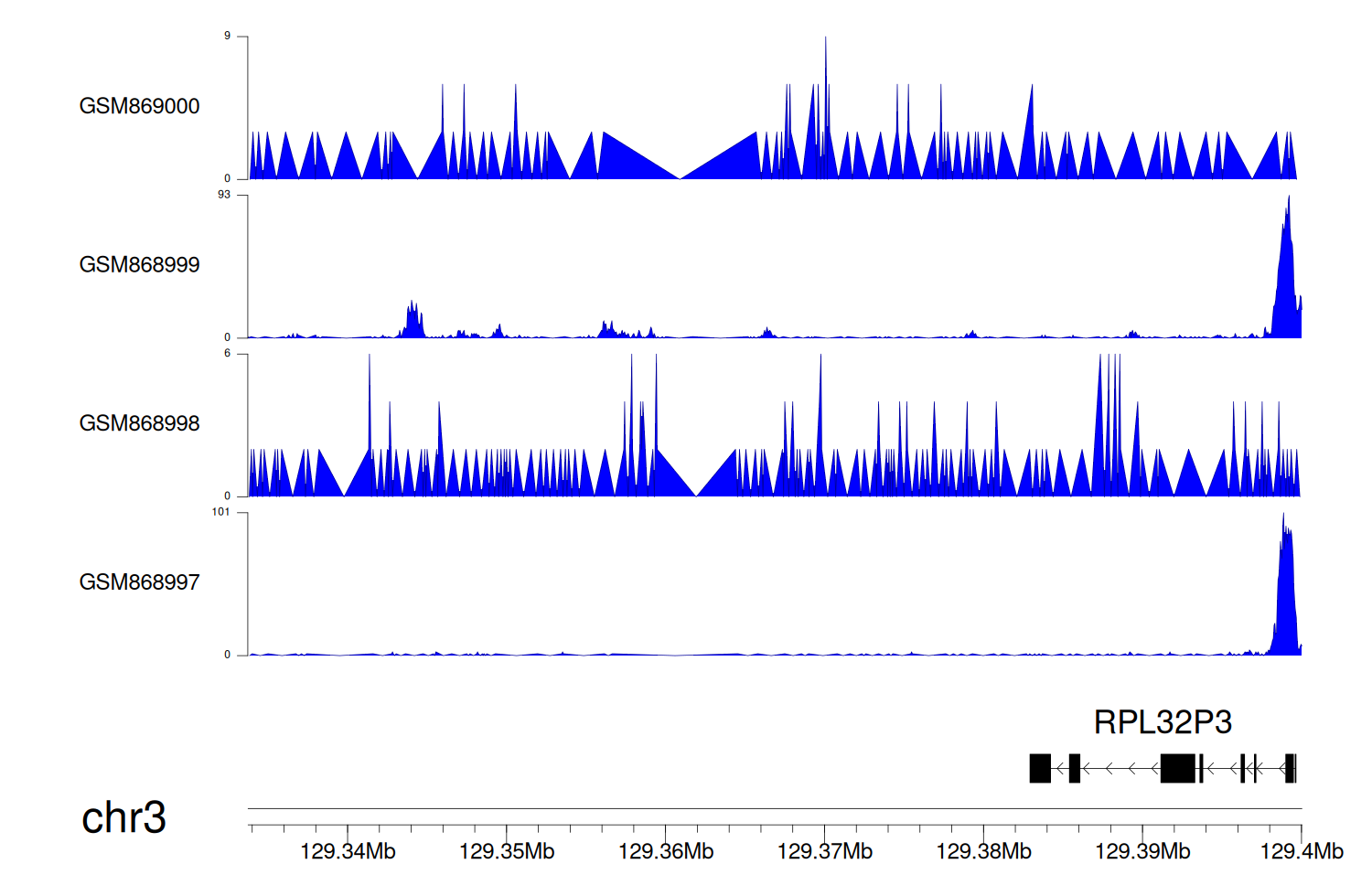 > Dataset: GSE68402 - RPL32P3 peak across samples