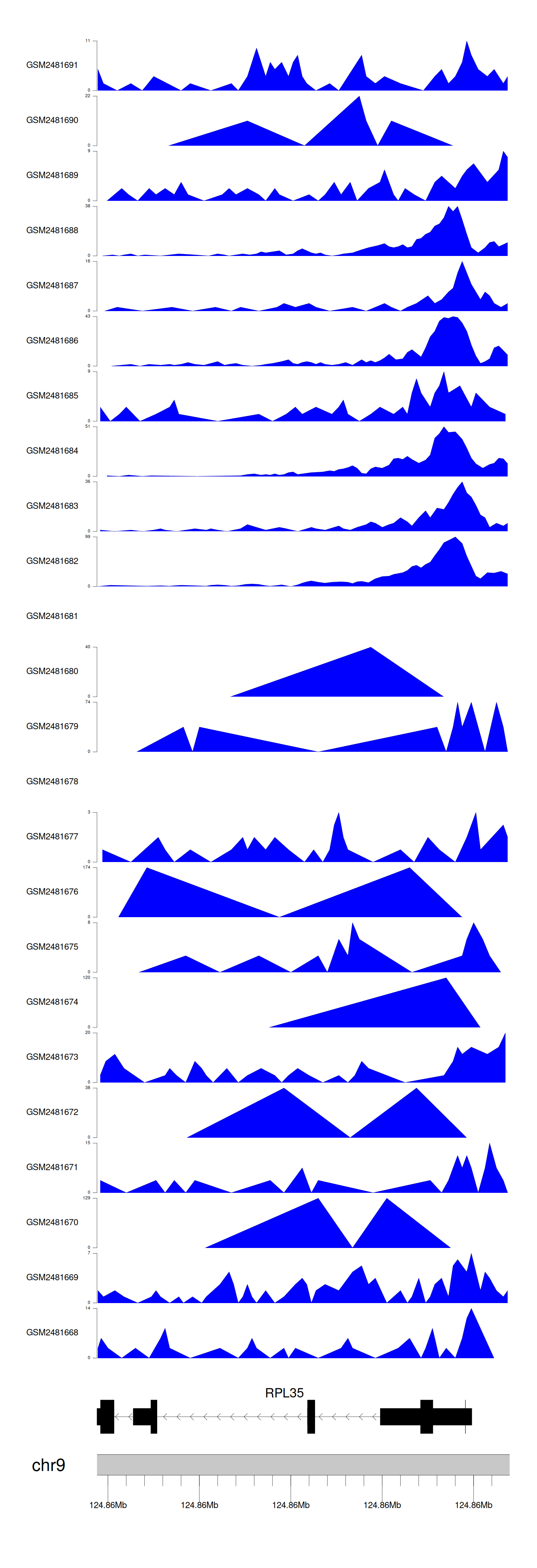 > Dataset: GSE94732 - RPL35 peak across samples