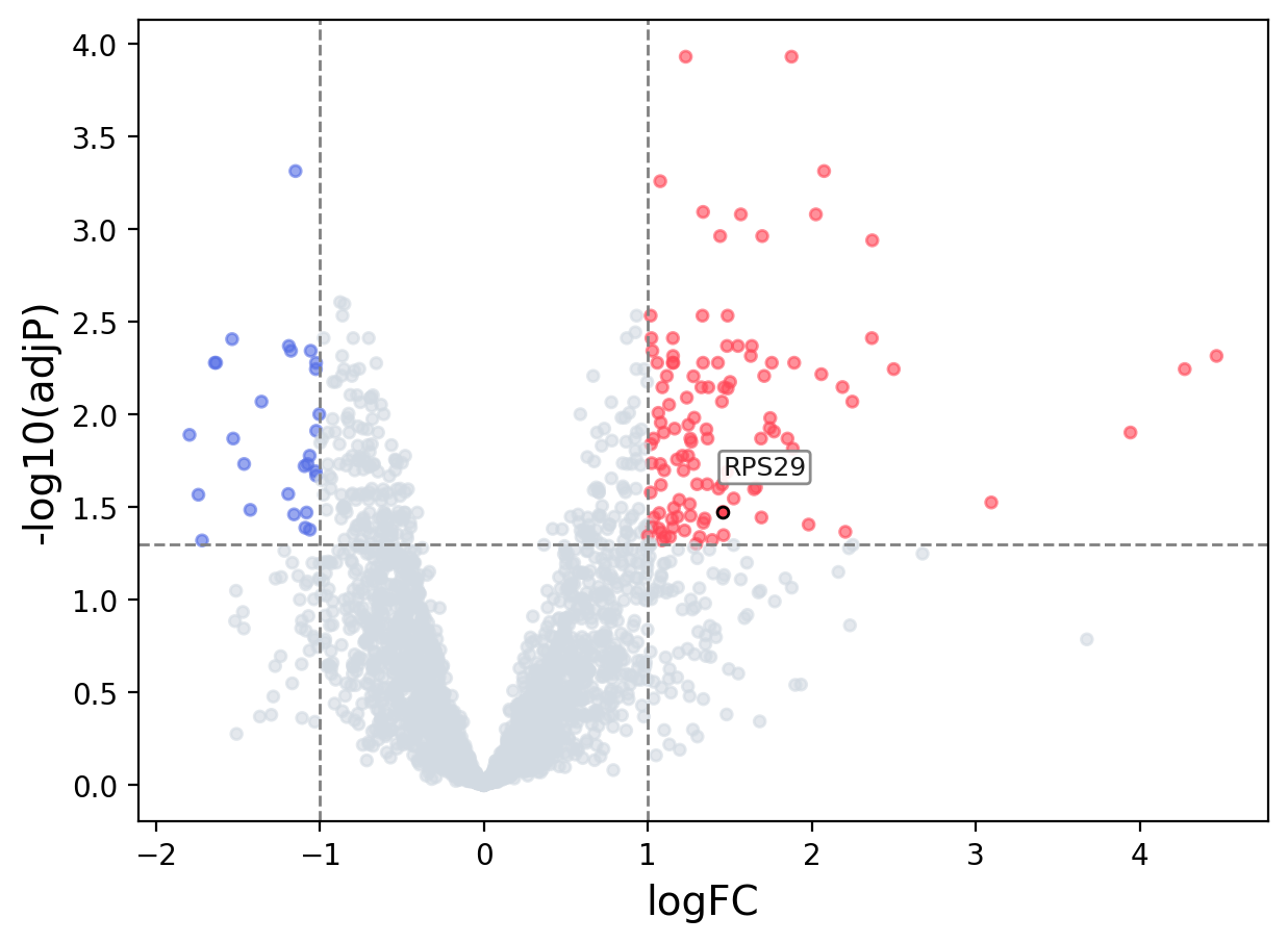 When the query gene is differentially changed in the dataset, a volcano/bar plot will be displayed.