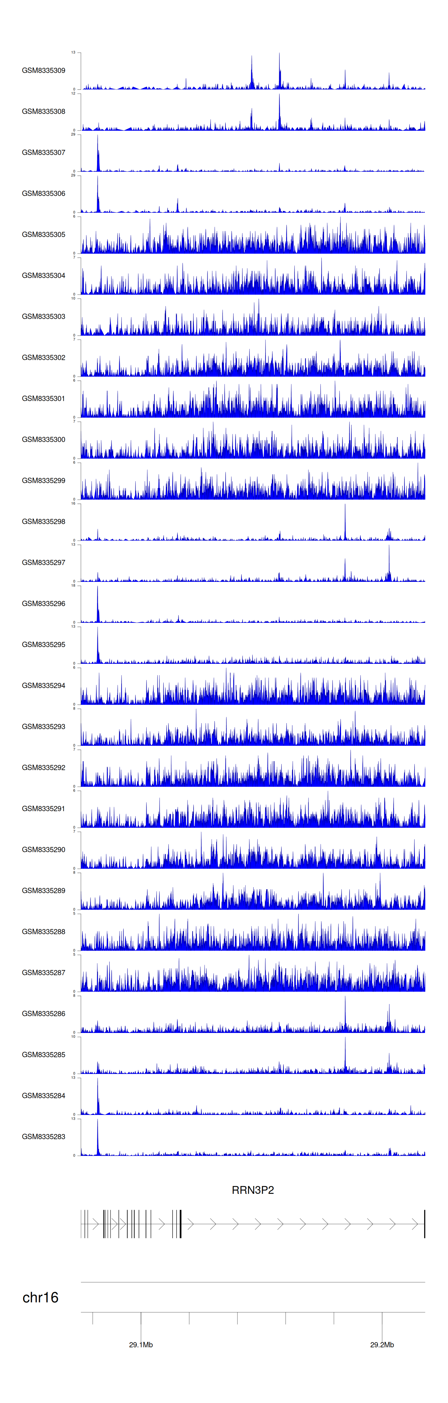 > Dataset: GSE270130 - RRN3P2 peak across samples