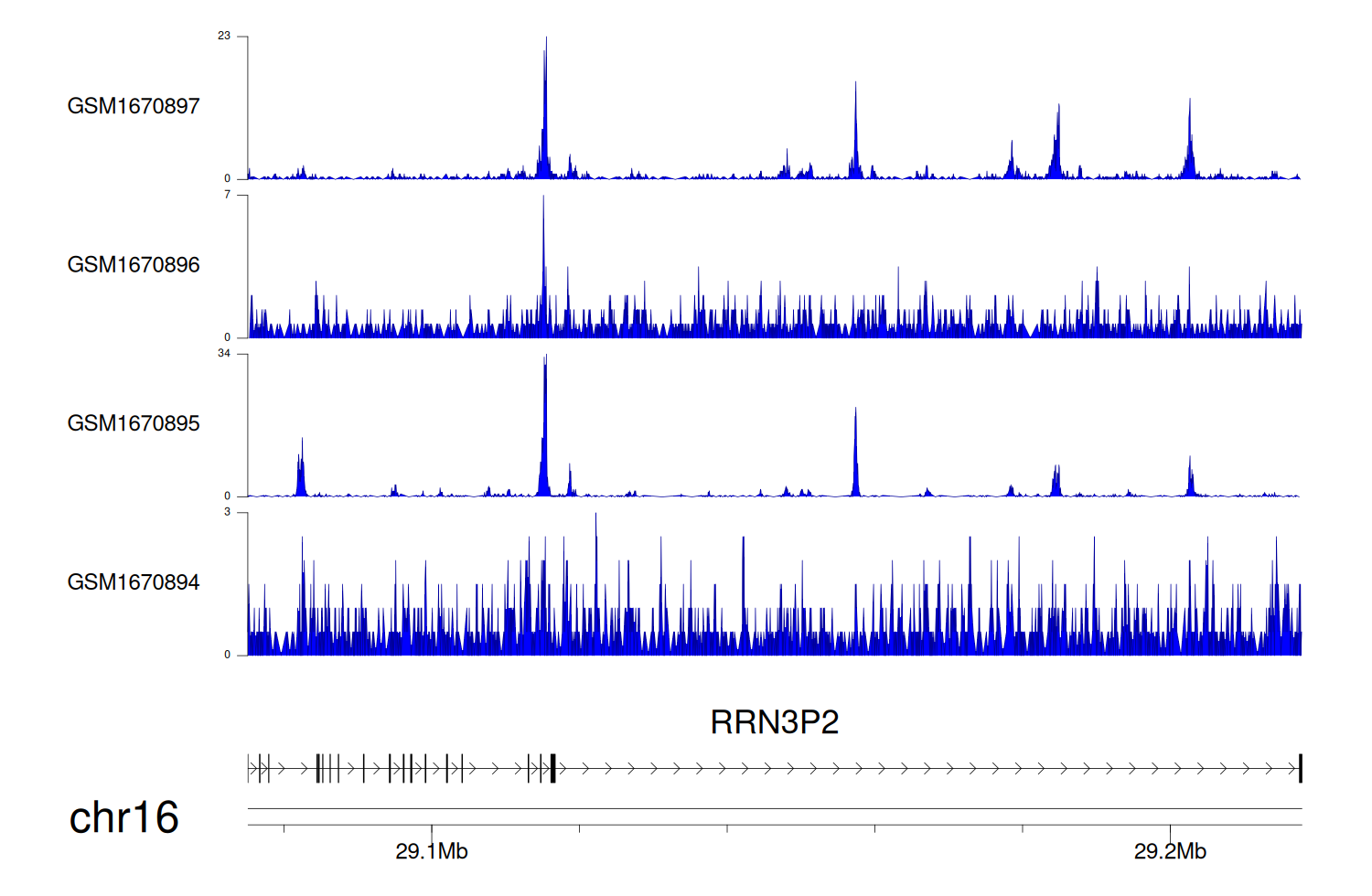 > Dataset: GSE68402 - RRN3P2 peak across samples
