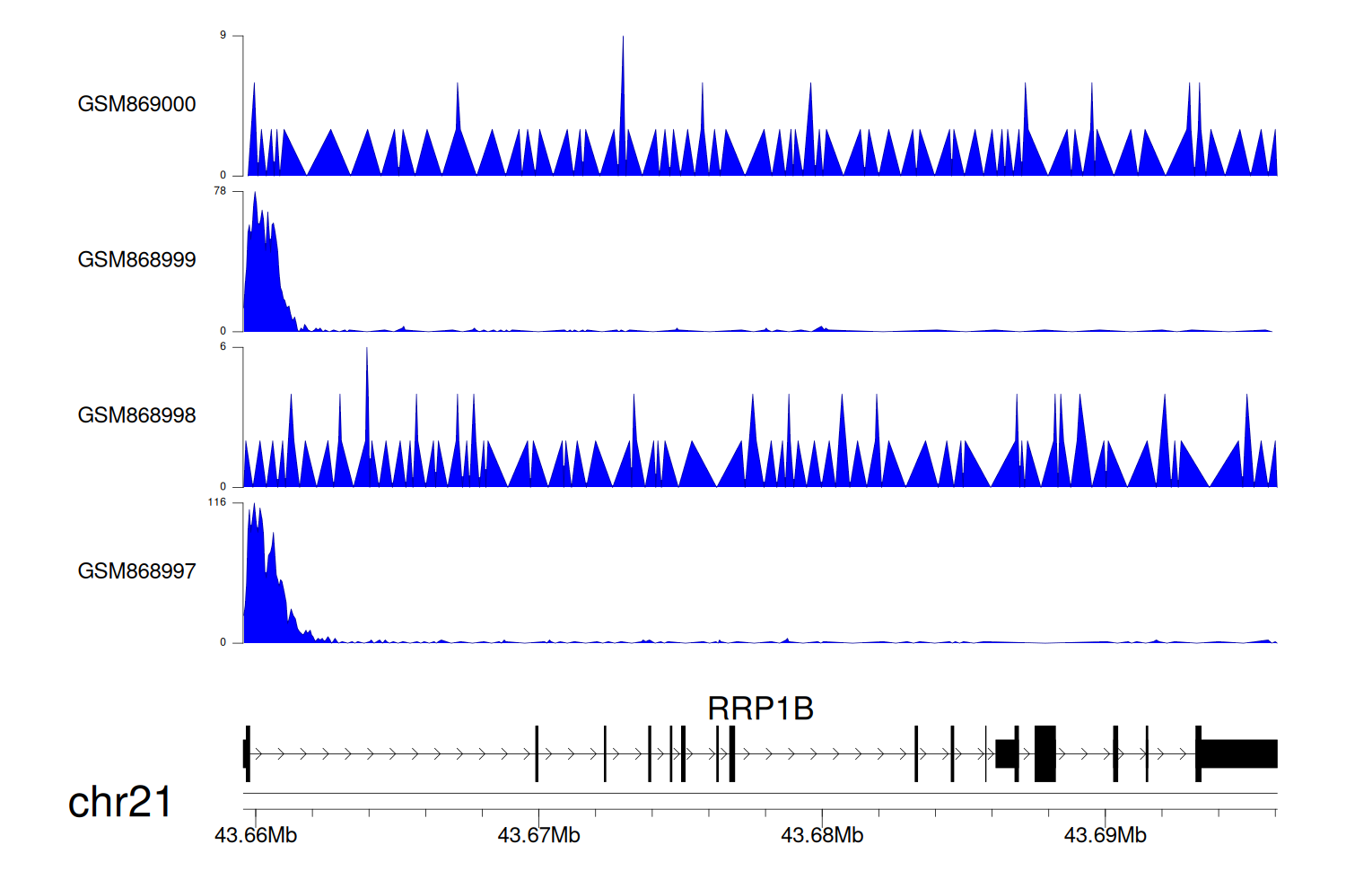 > Dataset: GSE35465 - RRP1B peak across samples