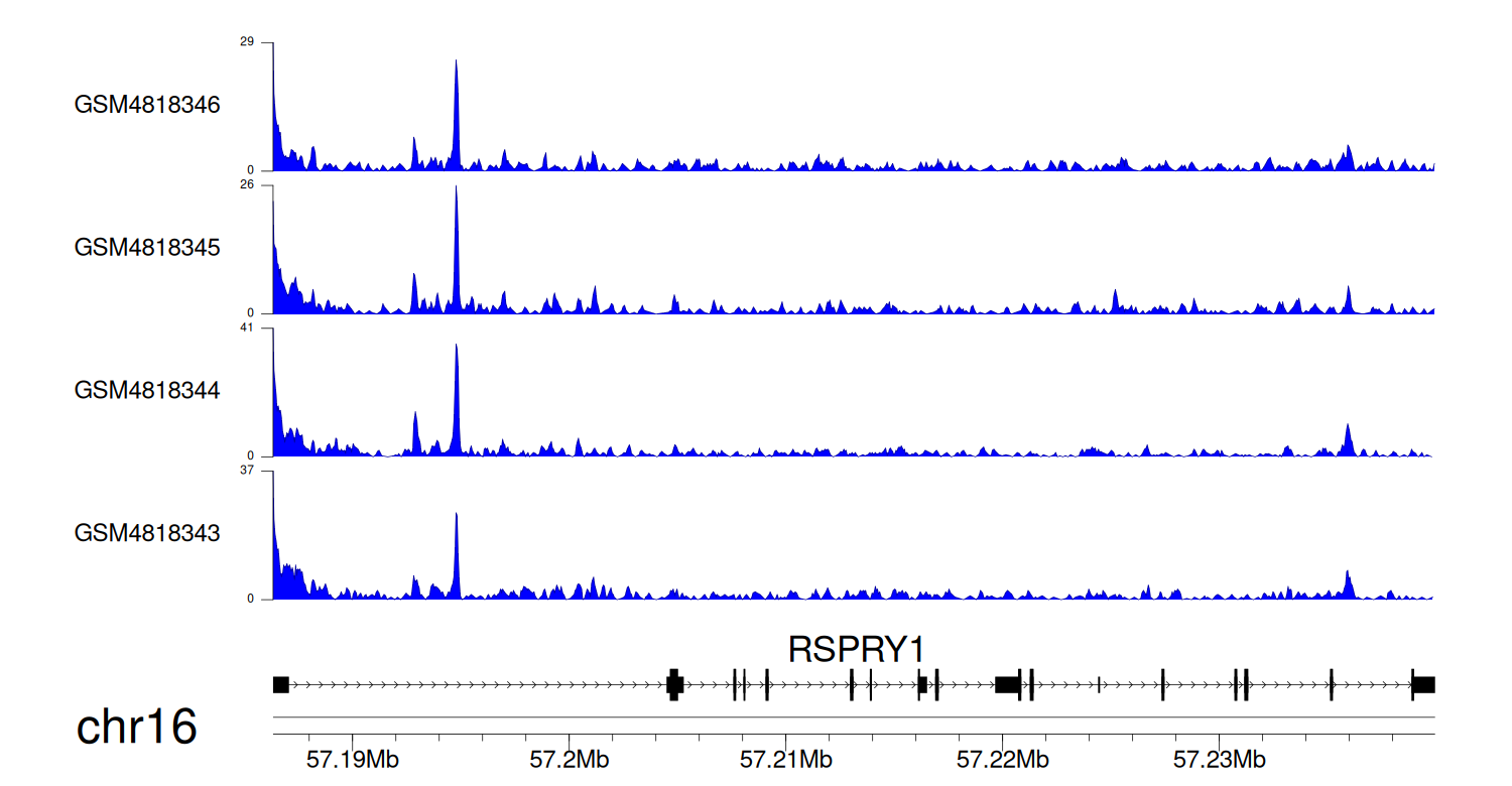> Dataset: GSE131257 - RSPRY1 peak across samples
