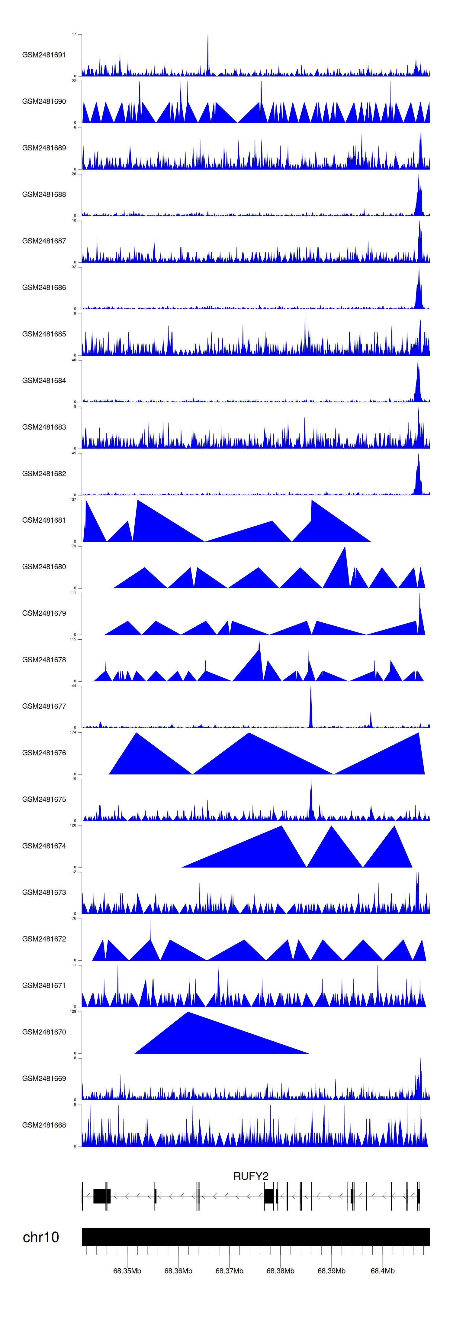 > Dataset: GSE94732 - RUFY2 peak across samples