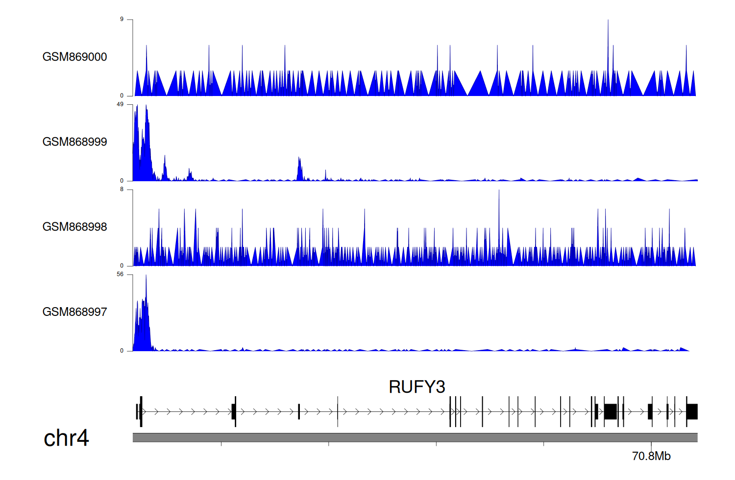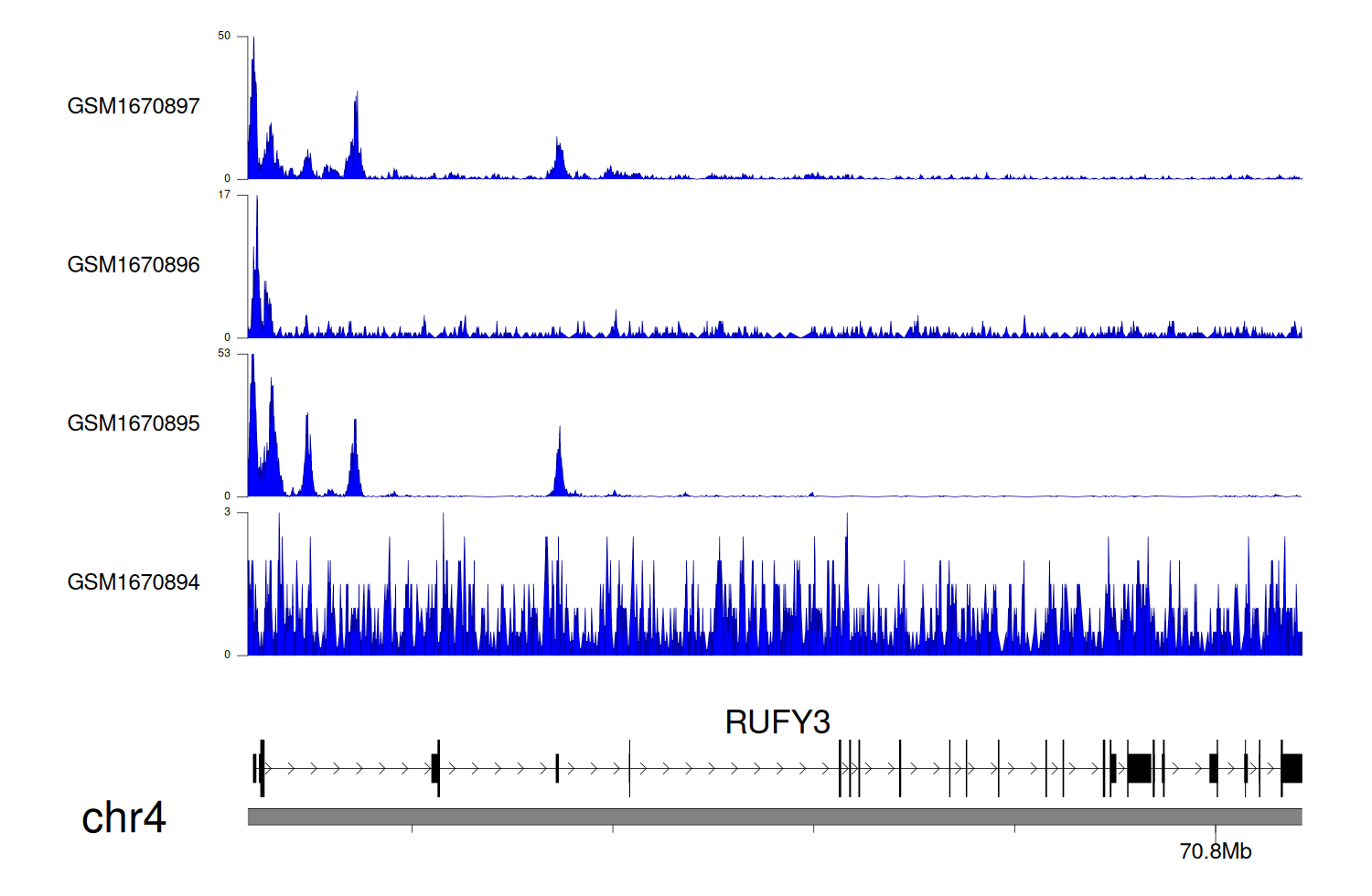 > Dataset: GSE68402 - RUFY3 peak across samples