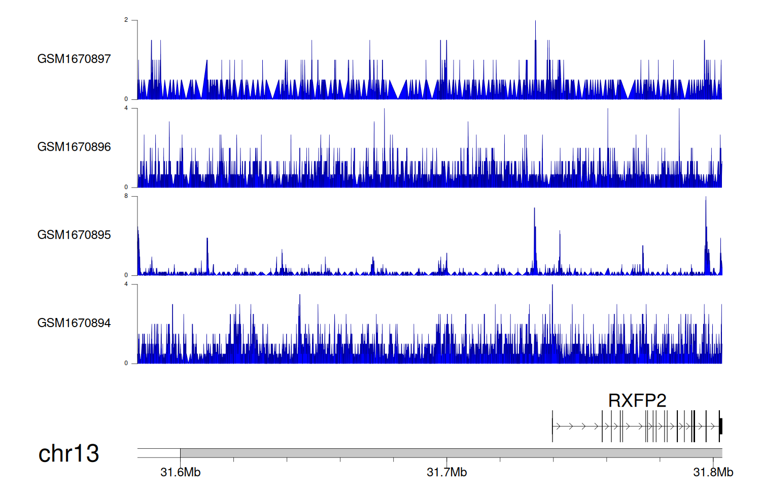 > Dataset: GSE68402 - RXFP2 peak across samples