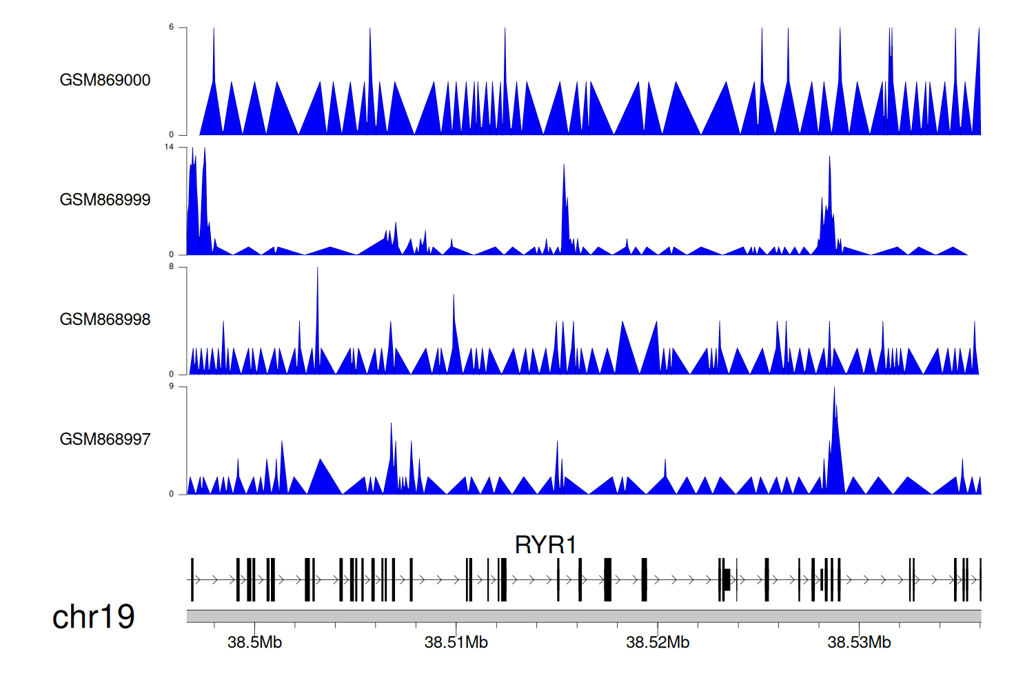 This gene encodes a ryanodine receptor found in skeletal muscle. The encoded protein functions as a calcium release channel in the sarcoplasmic reticulum but also serves to connect the sarcoplasmic reticulum and transverse tubule. Mutations in this gene are associated with malignant hyperthermia susceptibility, central core disease, and minicore myopathy with external ophthalmoplegia. Alternatively spliced transcripts encoding different isoforms have been described. [provided by RefSeq, Jul 2008] |