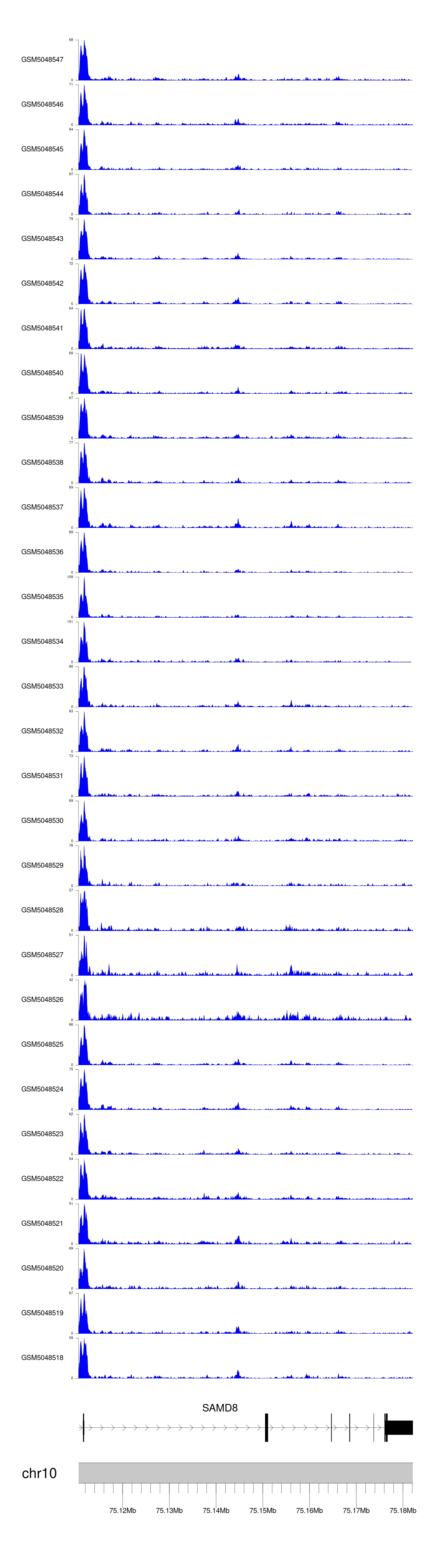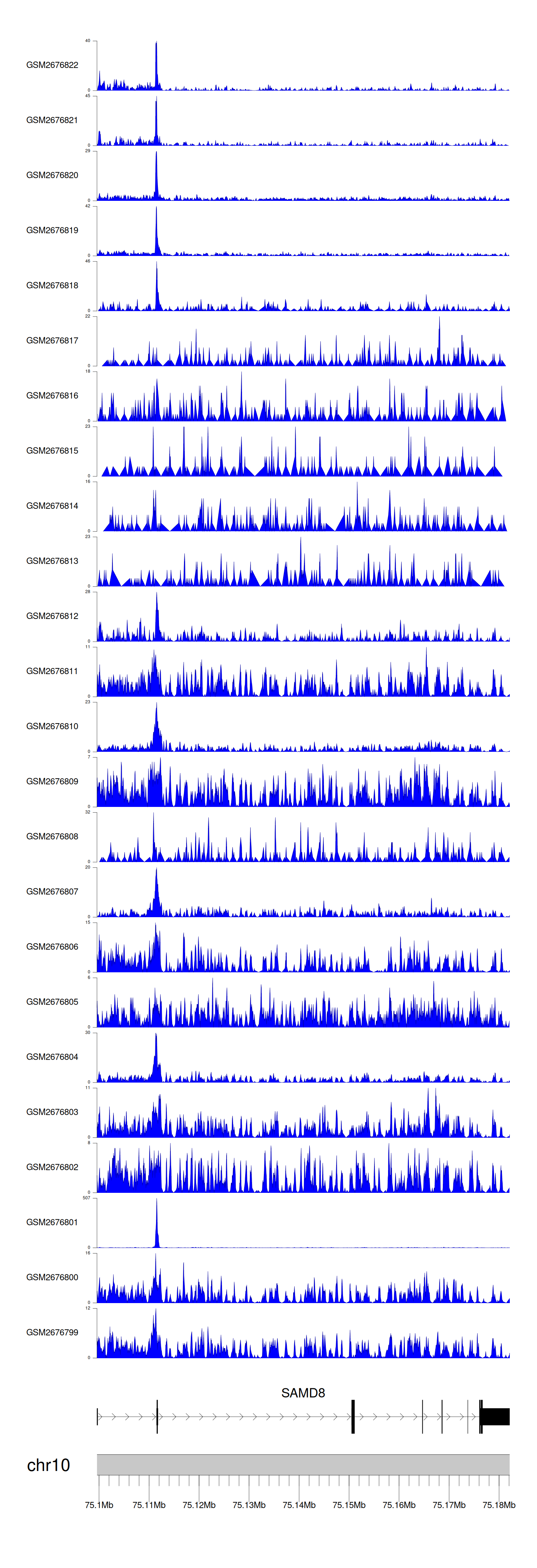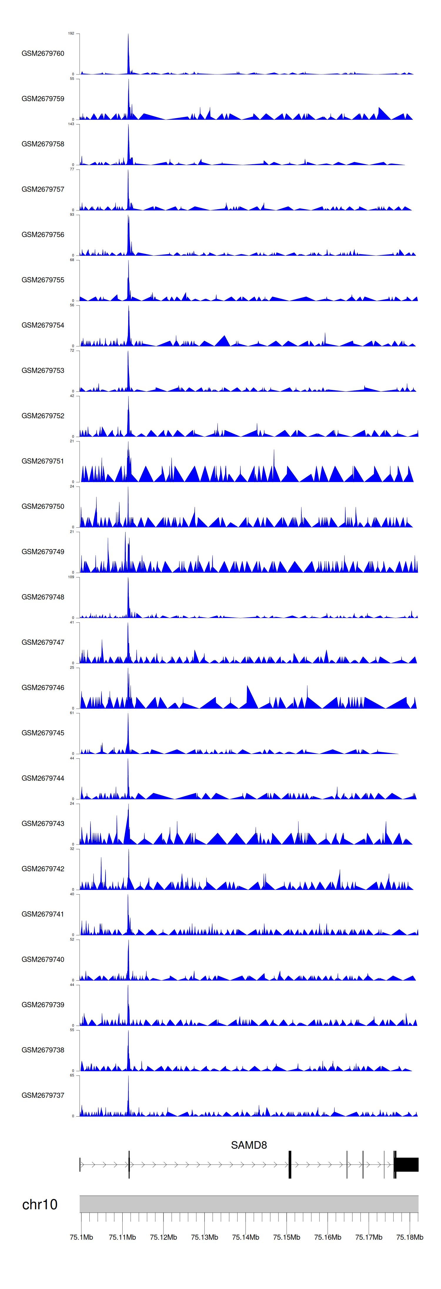 > Dataset: GSE100376 - SAMD8 peak across samples
