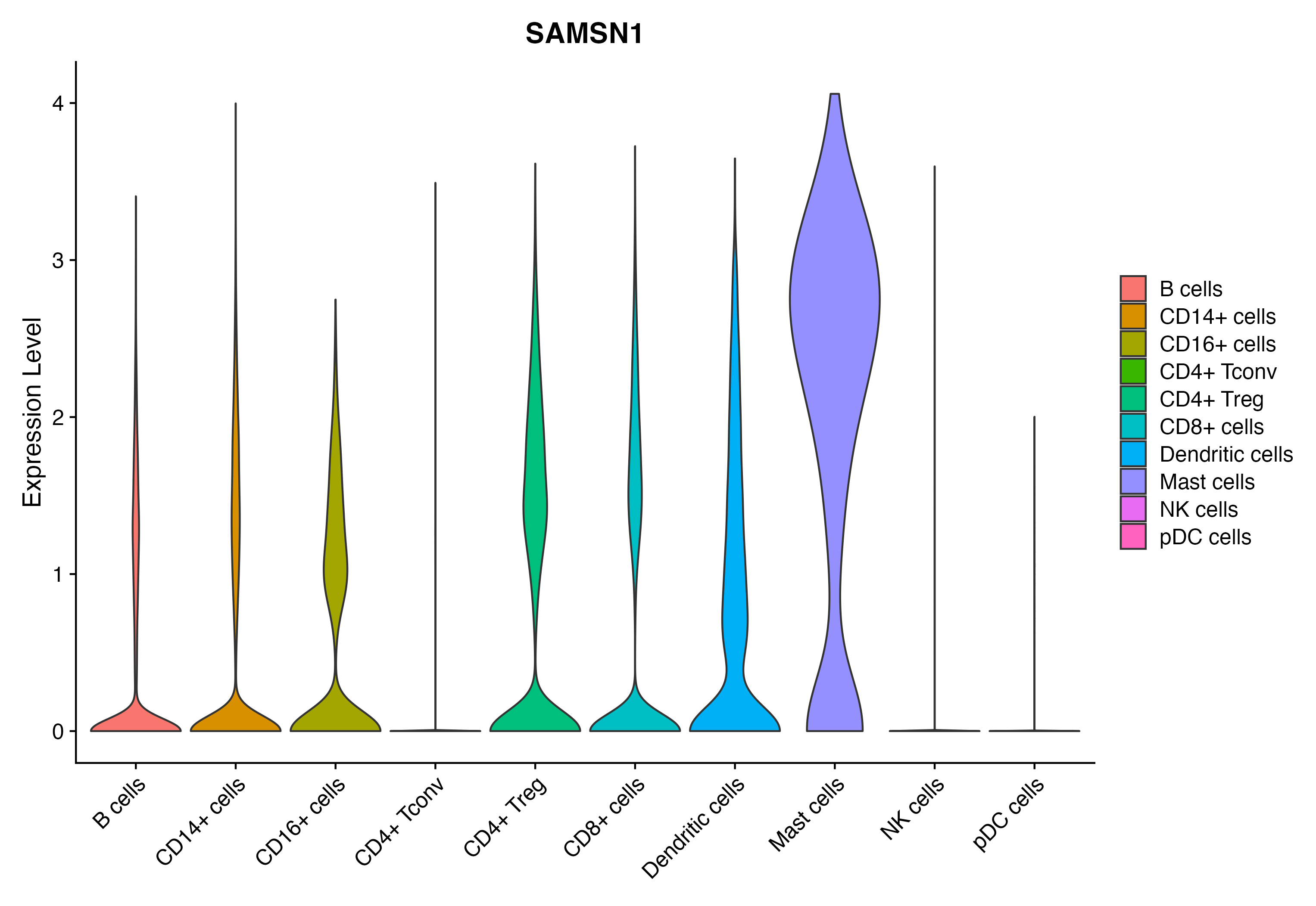 Summary SAMSN1 is a member of a novel gene family of putative adaptors and scaffold proteins containing SH3 and SAM (sterile alpha motif) domains (Claudio et al., 2001 [PubMed 11536050]).[supplied by OMIM, Mar 2008]