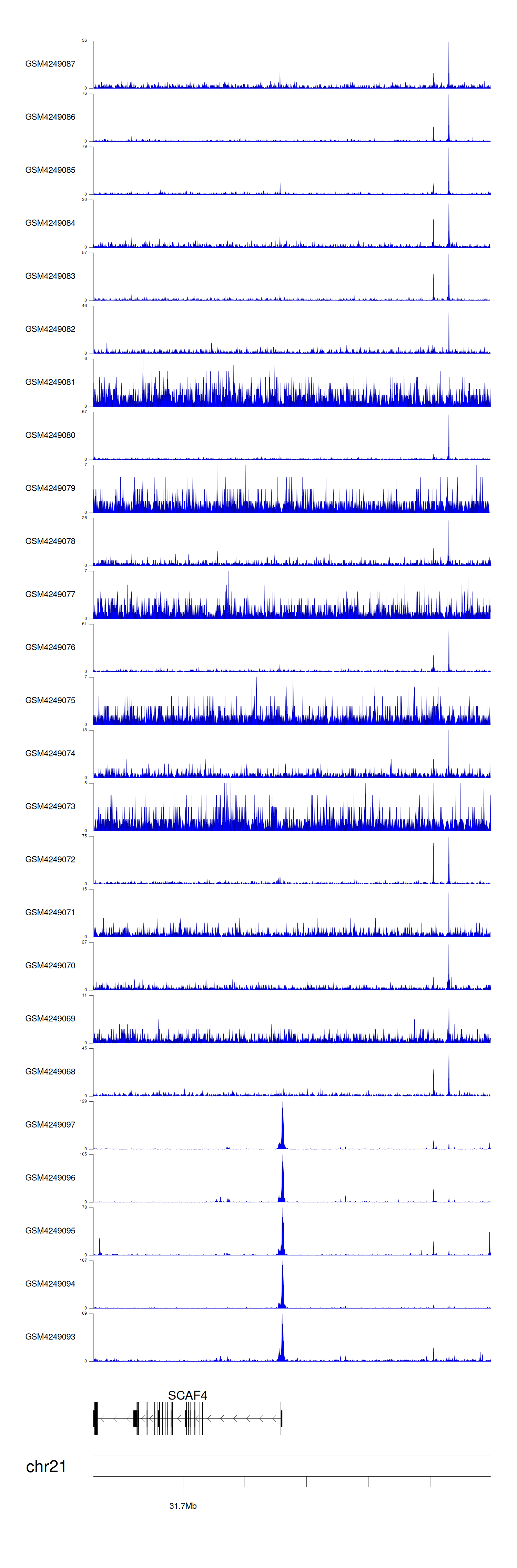 > Dataset: GSE183048 - SCAF4 peak across samples