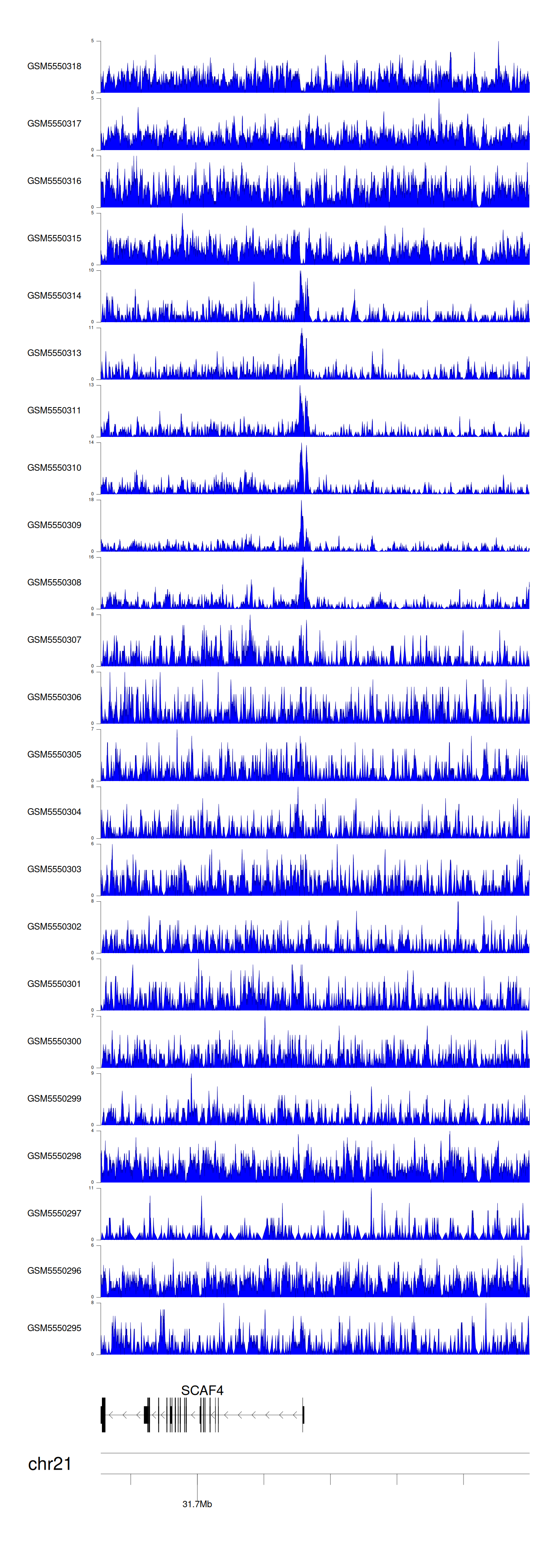 > Dataset: GSE143026 - SCAF4 peak across samples
