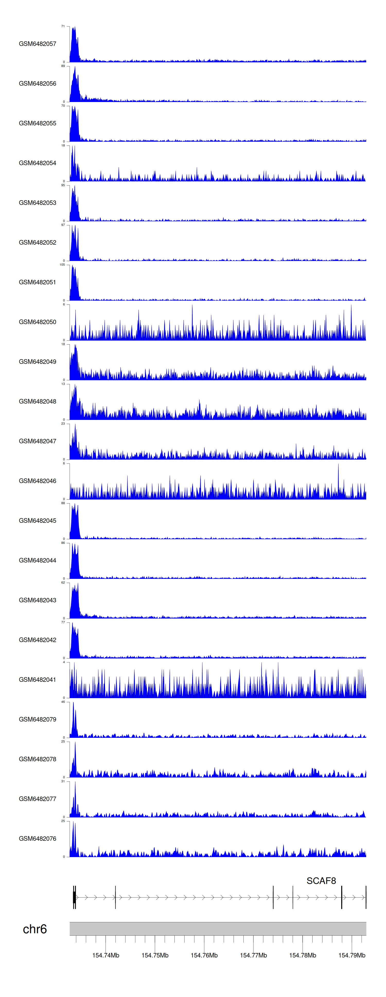 > Dataset: GSE144329 - SCAF8 peak across samples