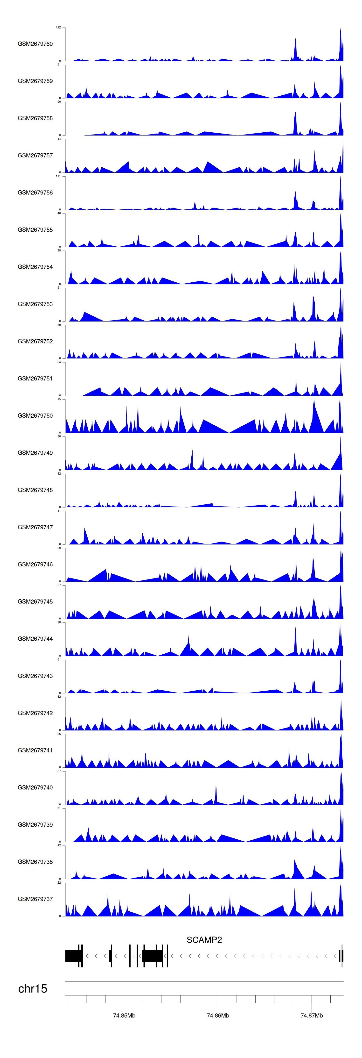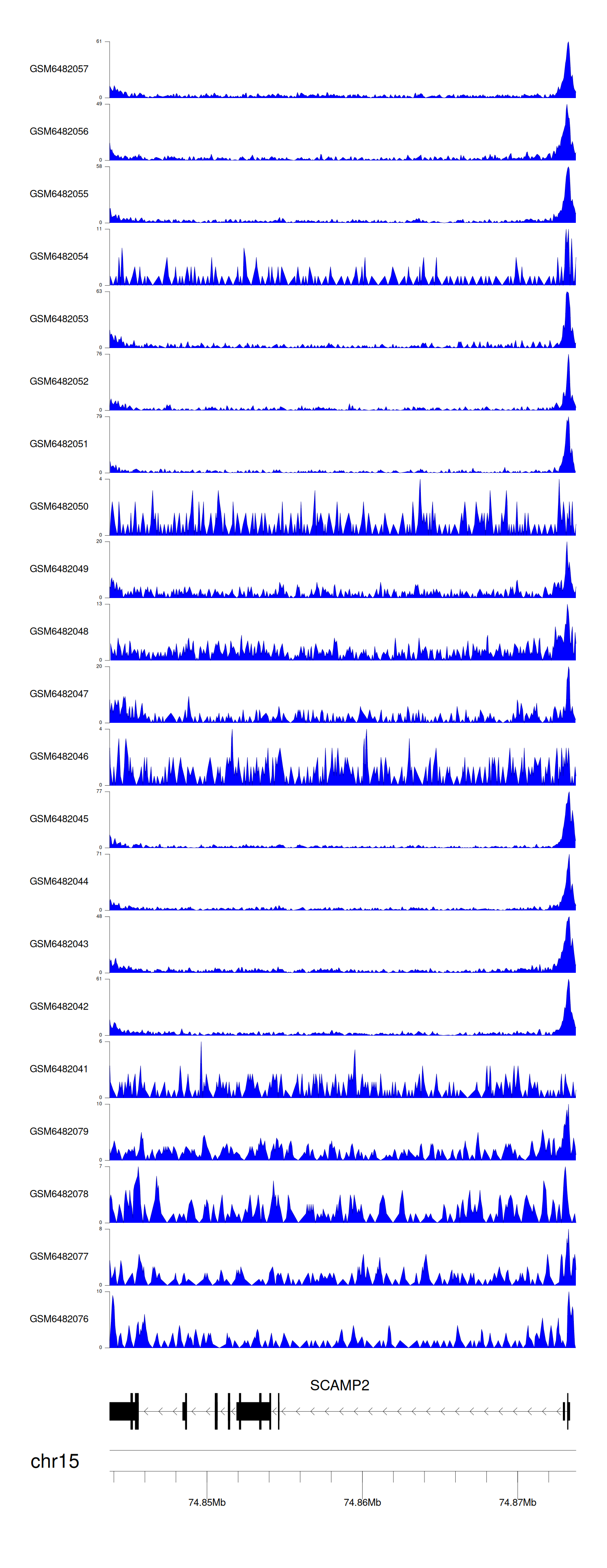> Dataset: GSE165703 - SCAMP2 peak across samples