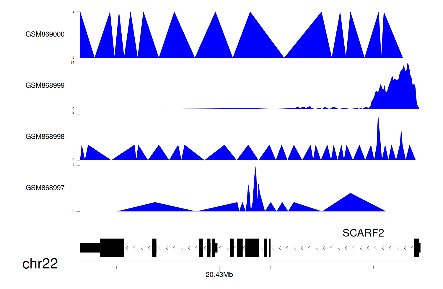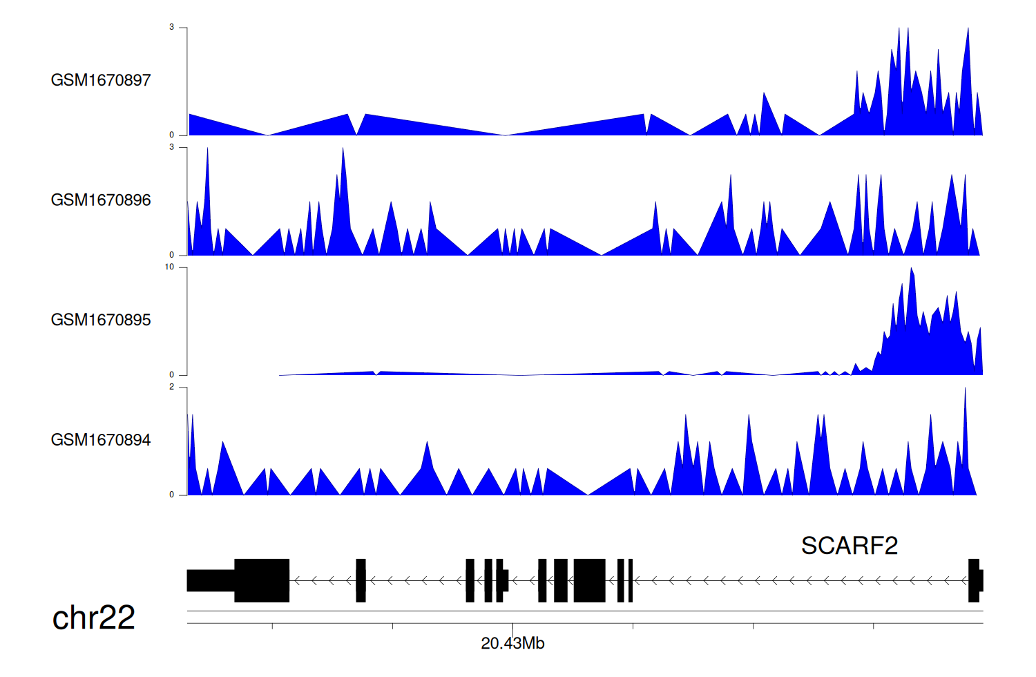 > Dataset: GSE68402 - SCARF2 peak across samples