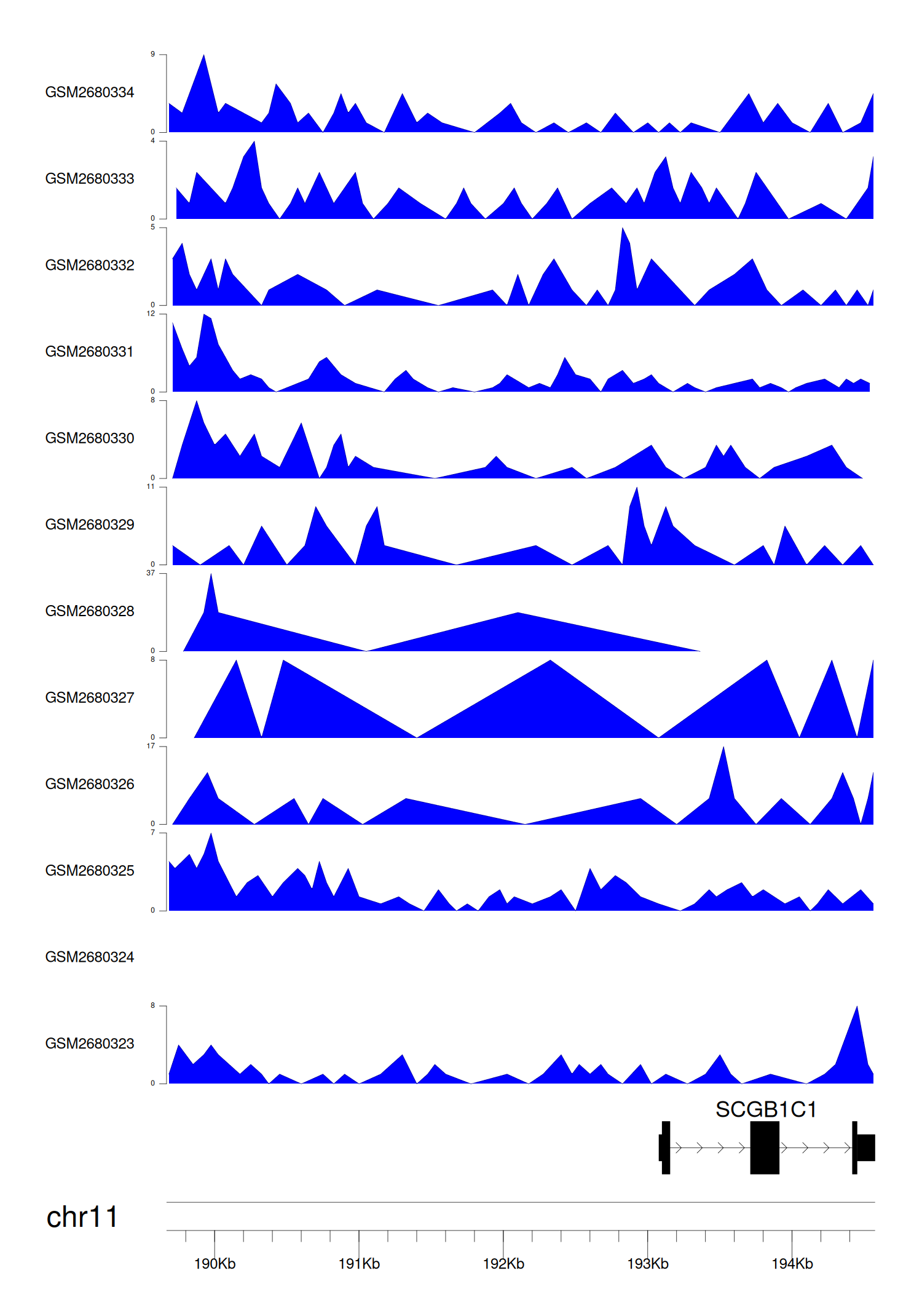 > Dataset: GSE100400 - SCGB1C1 peak across samples