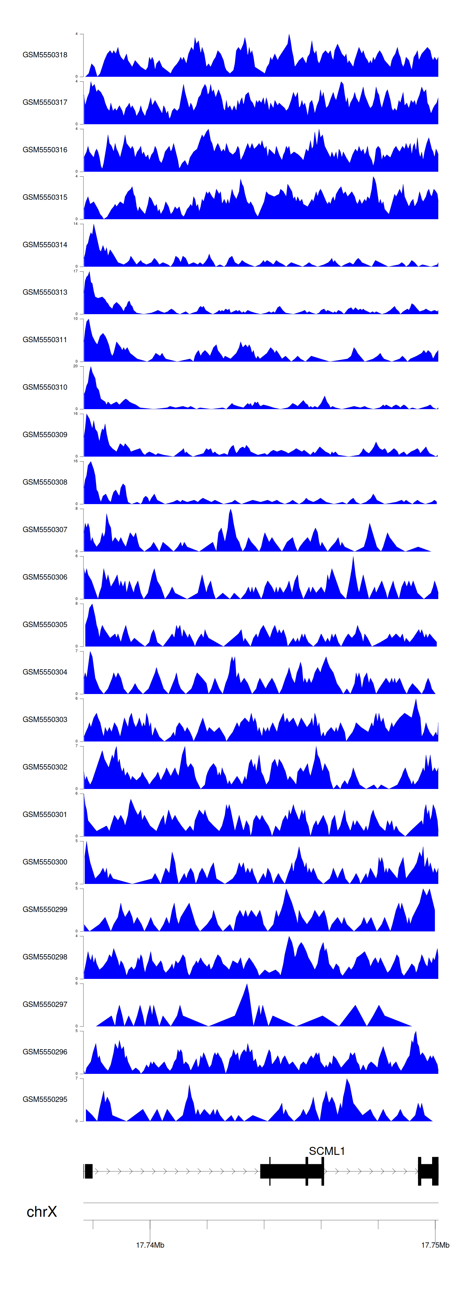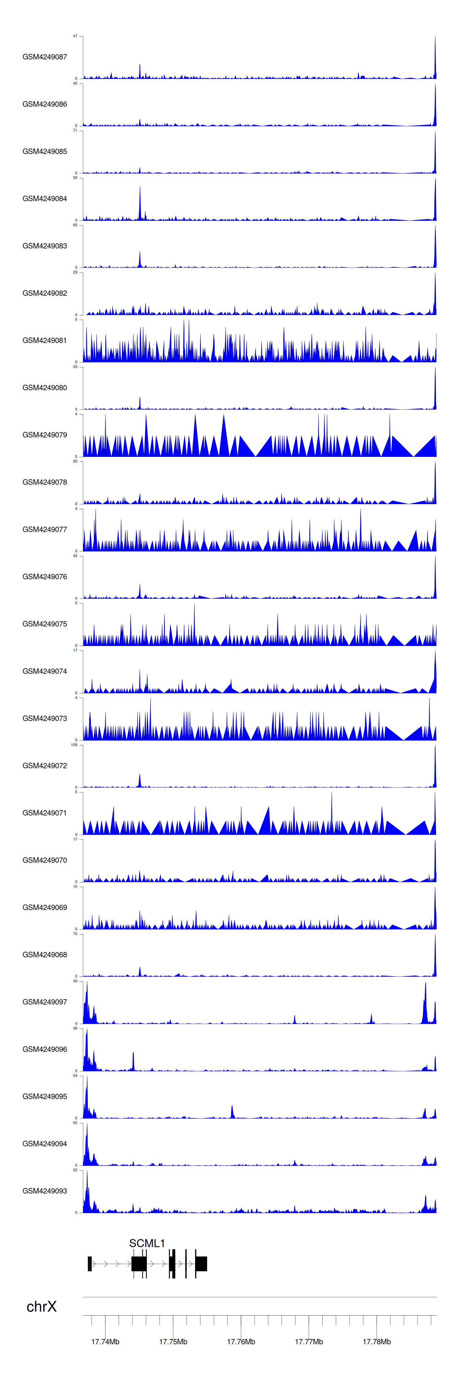 > Dataset: GSE183048 - SCML1 peak across samples