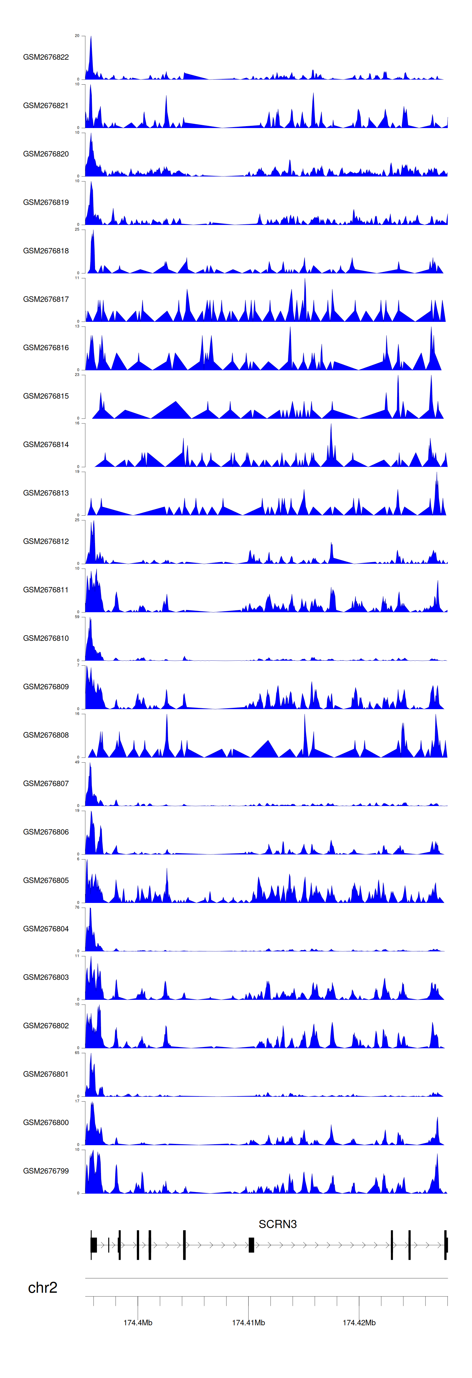 > Dataset: GSE100376 - SCRN3 peak across samples