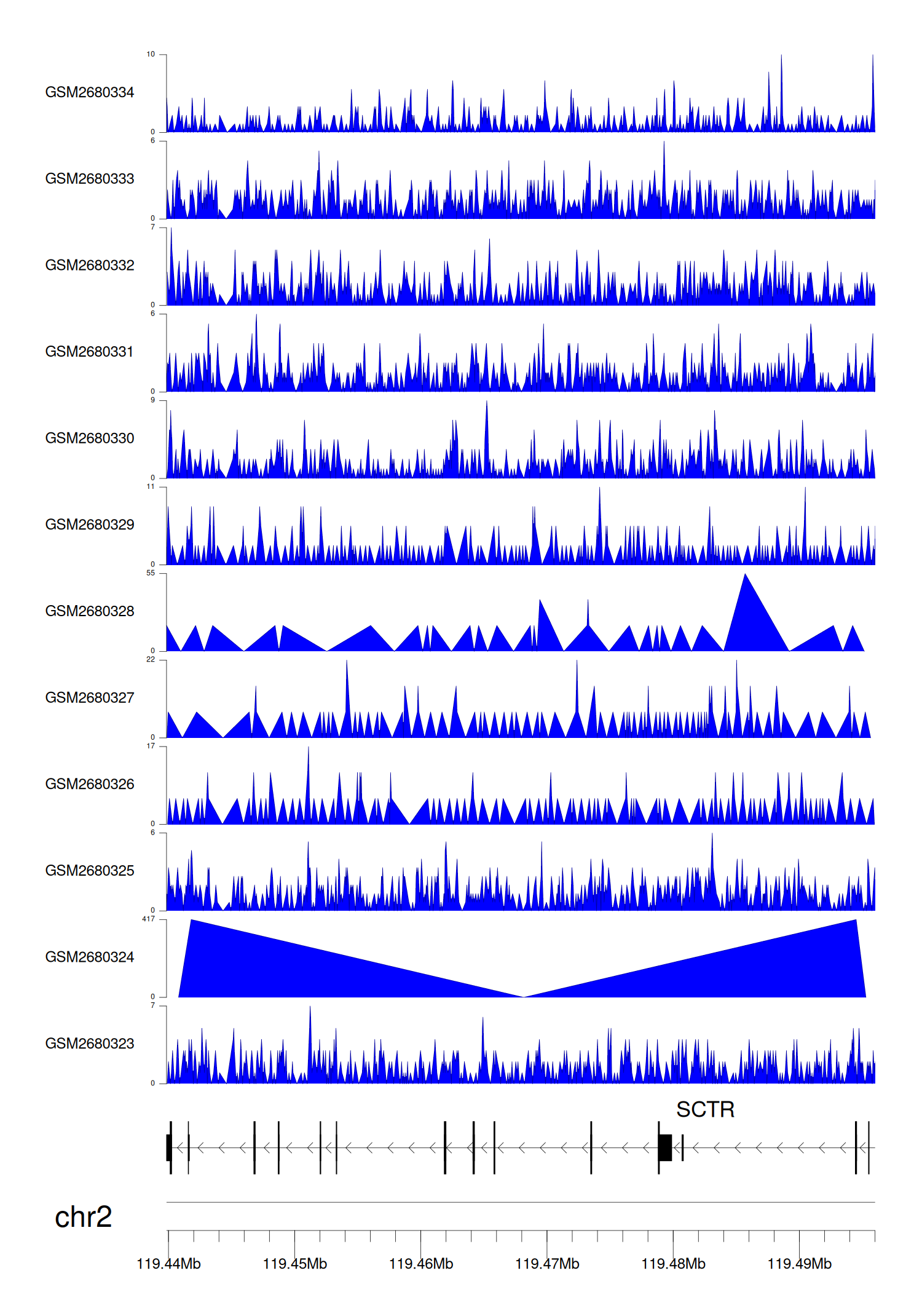 > Dataset: GSE68402 - SCTR peak across samples