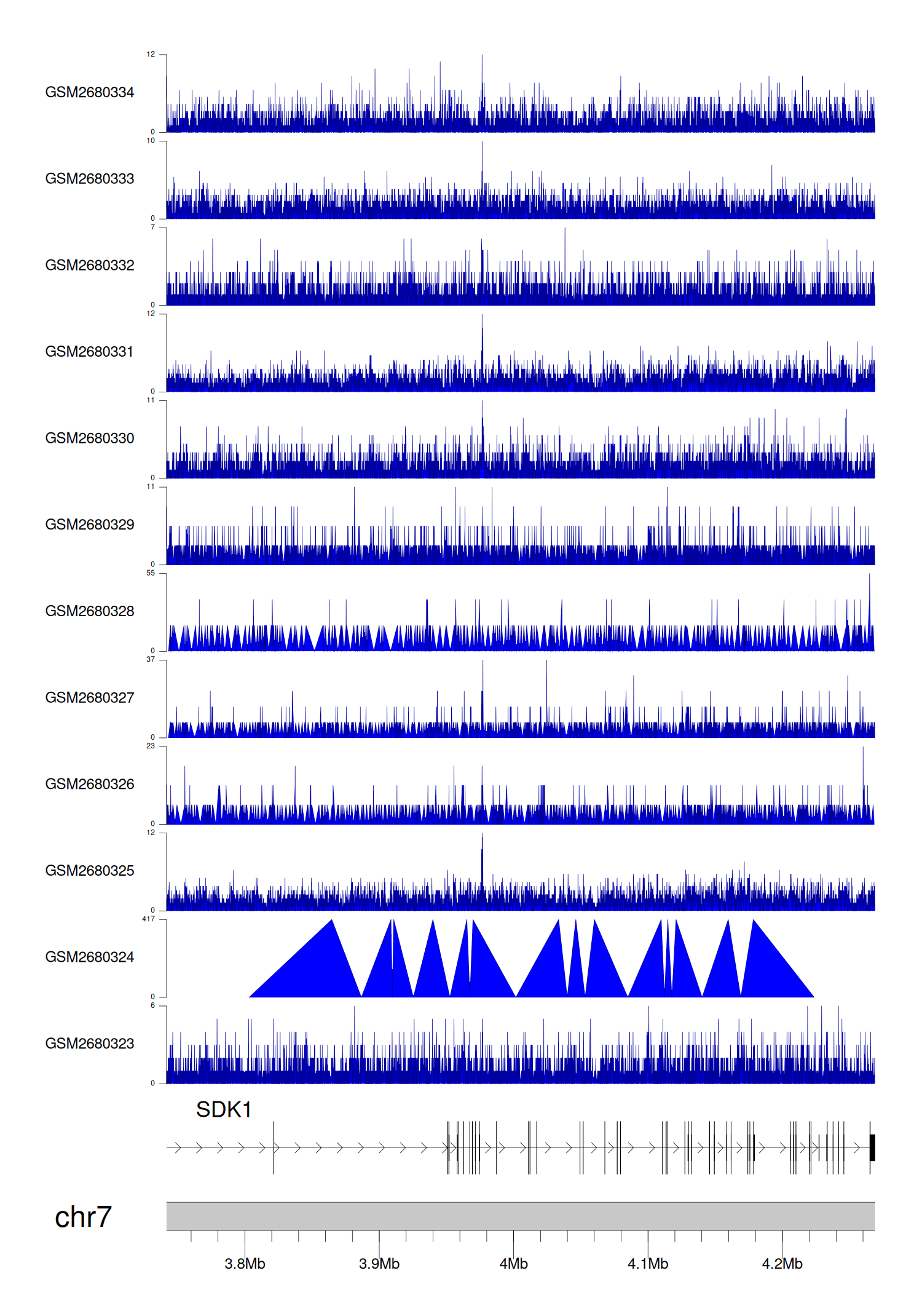 > Dataset: GSE68402 - SDK1 peak across samples