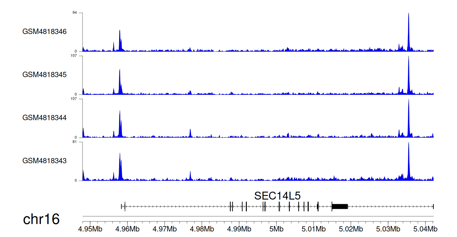 > Dataset: GSE270130 - SEC14L5 peak across samples