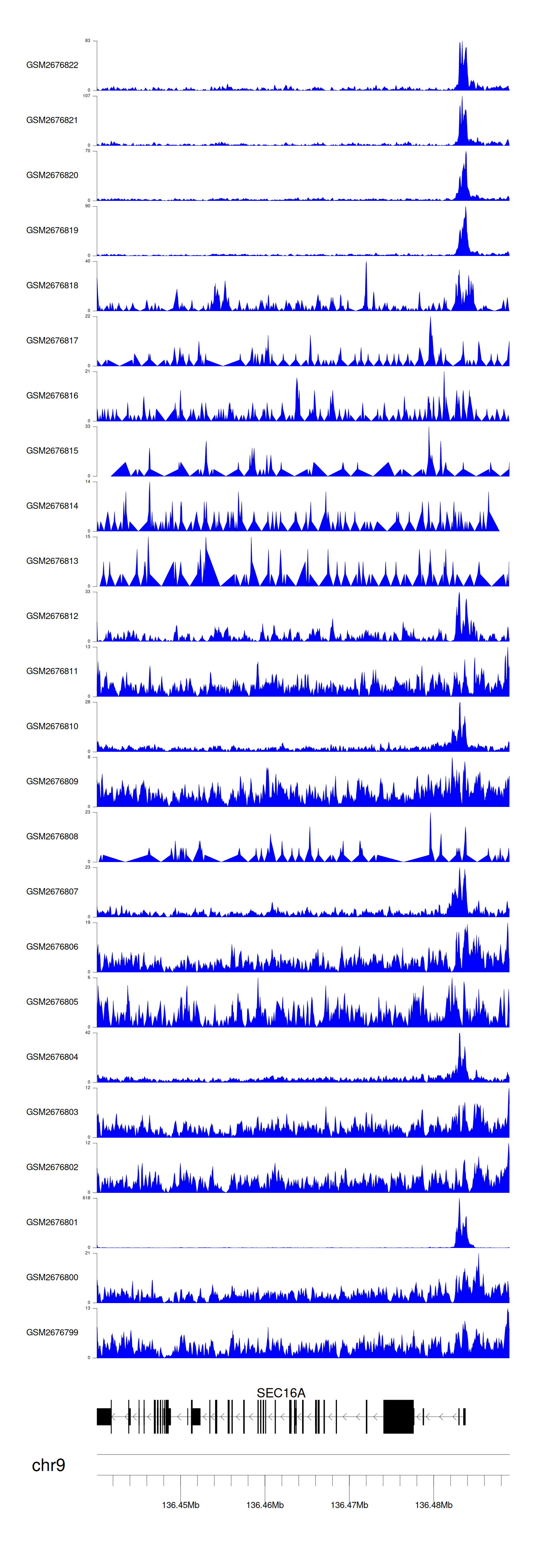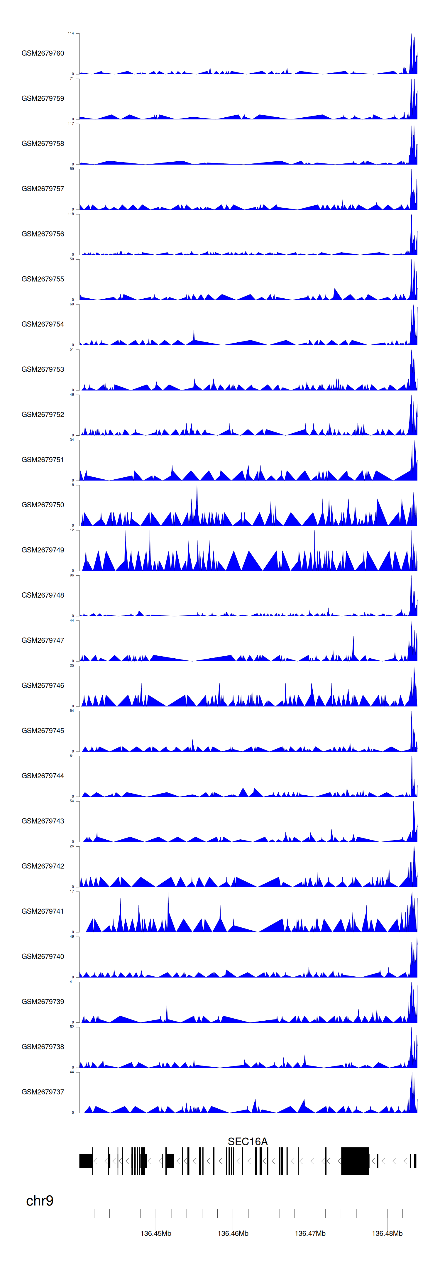 > Dataset: GSE165703 - SEC16A peak across samples