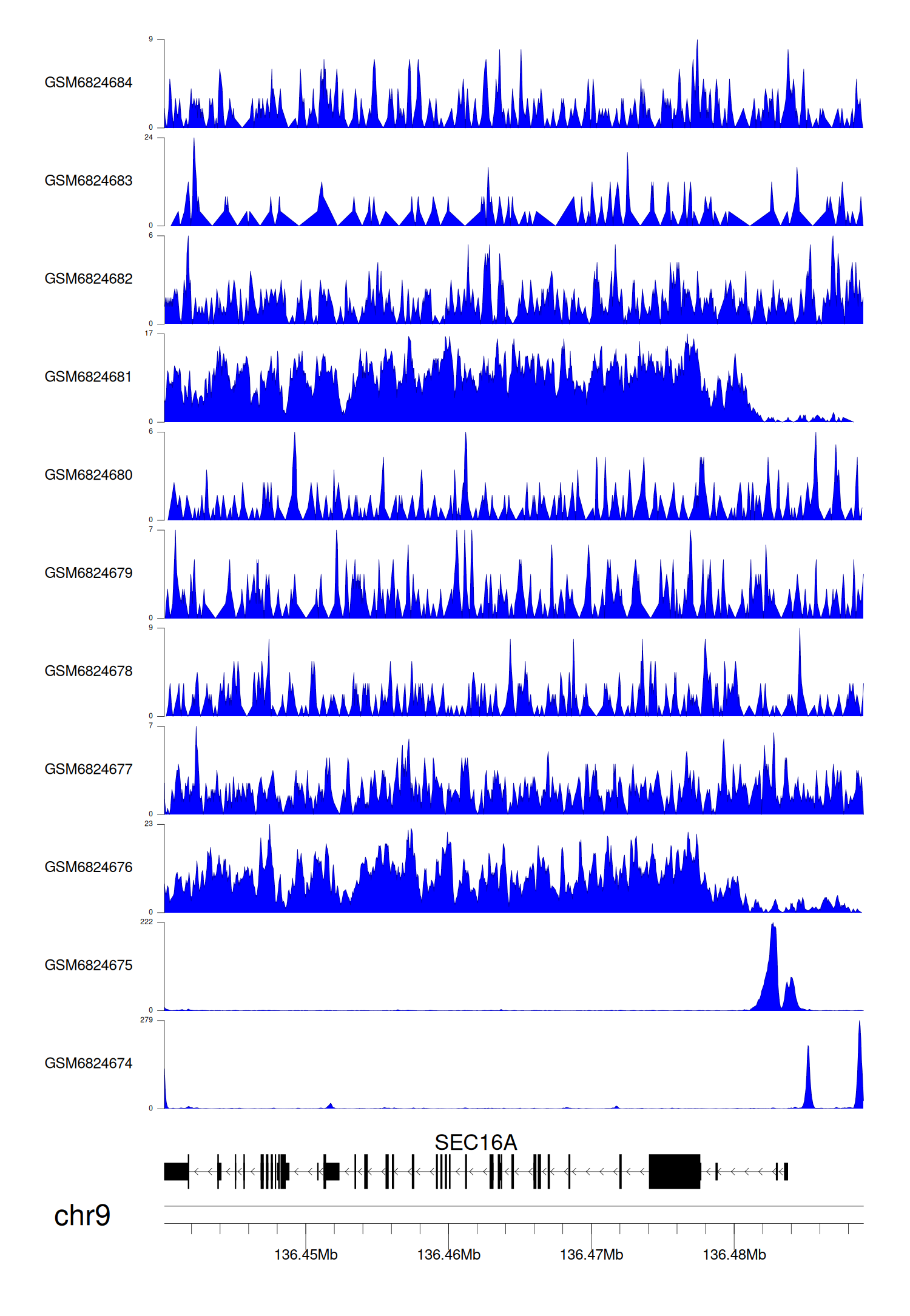 > Dataset: GSE211651 - SEC16A peak across samples