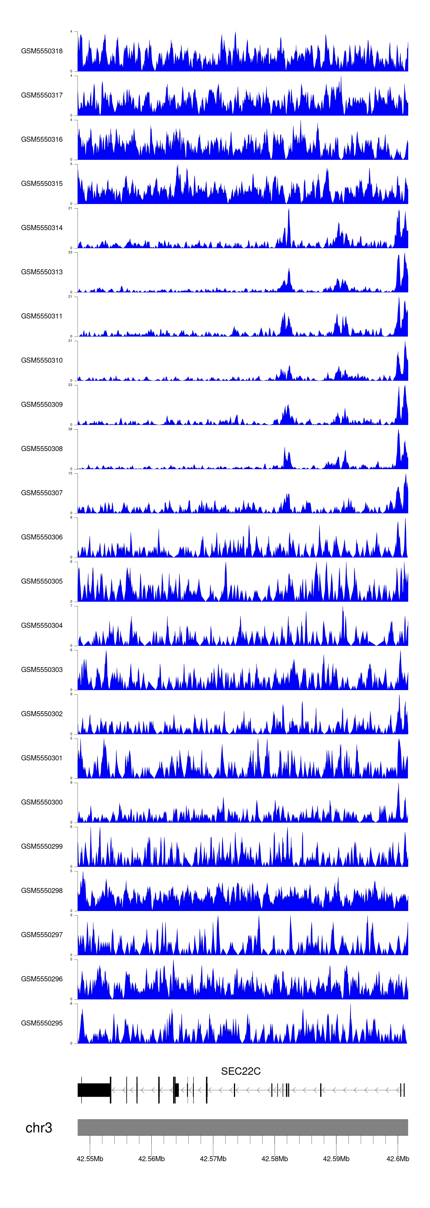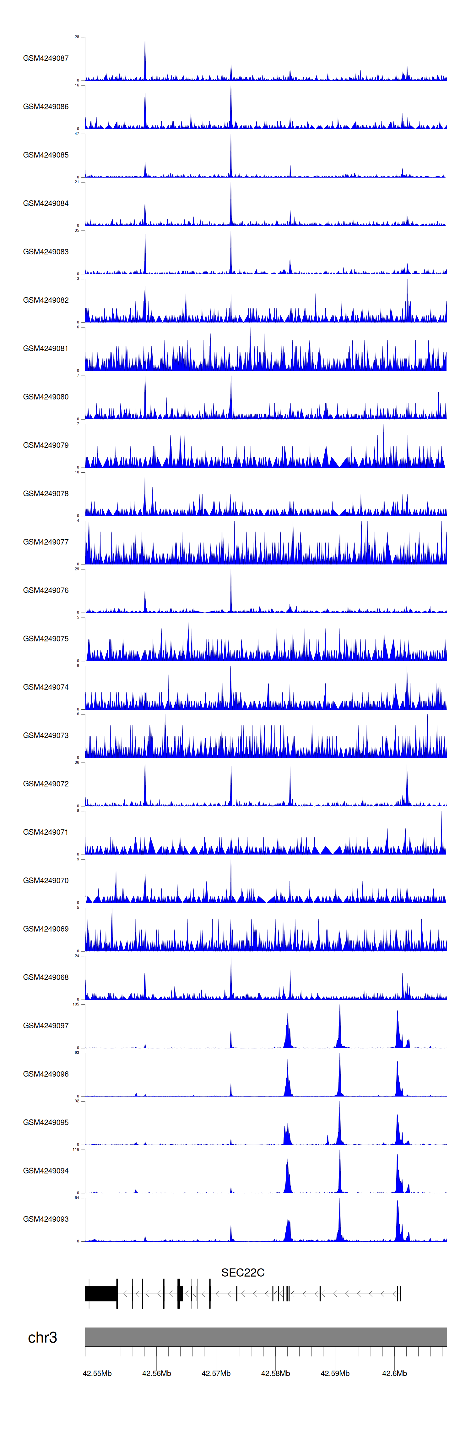 > Dataset: GSE143026 - SEC22C peak across samples