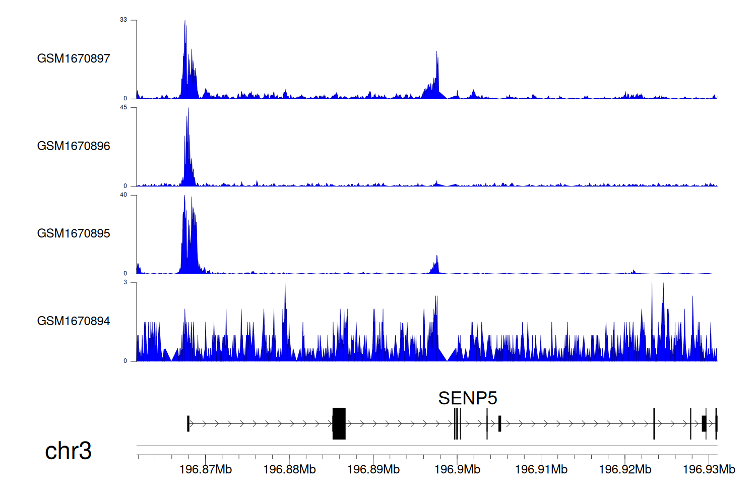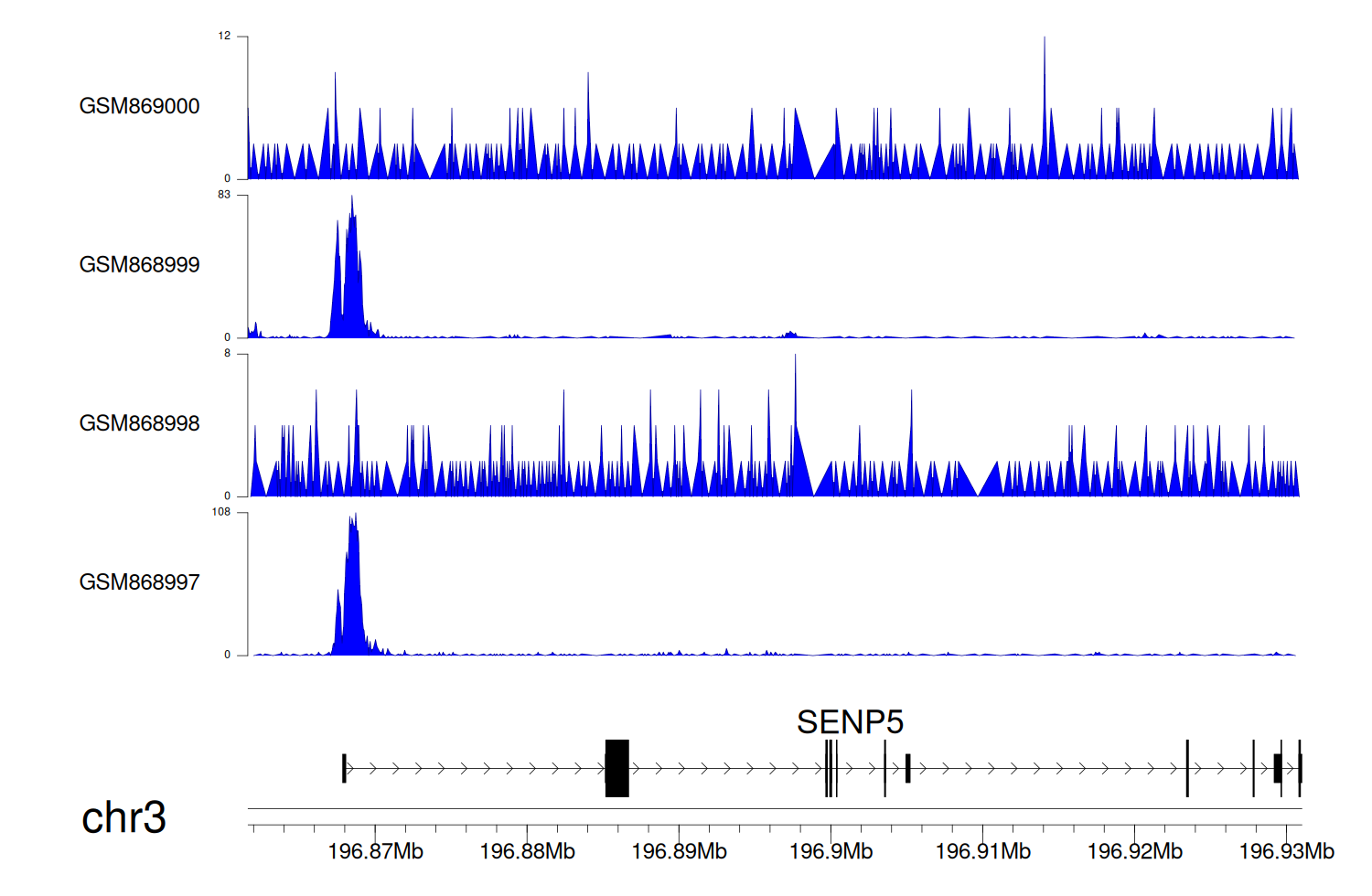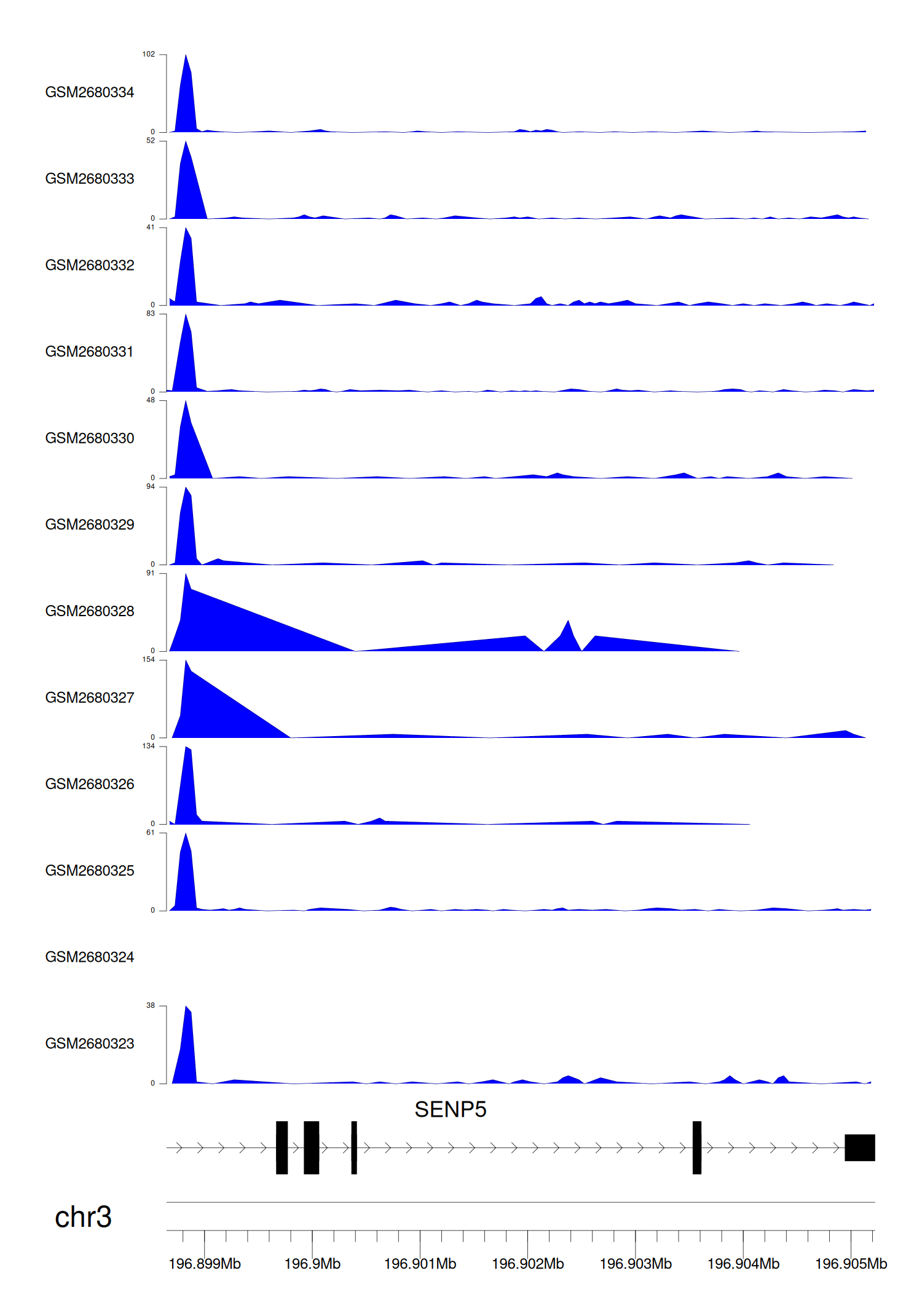 > Dataset: GSE68402 - SENP5 peak across samples