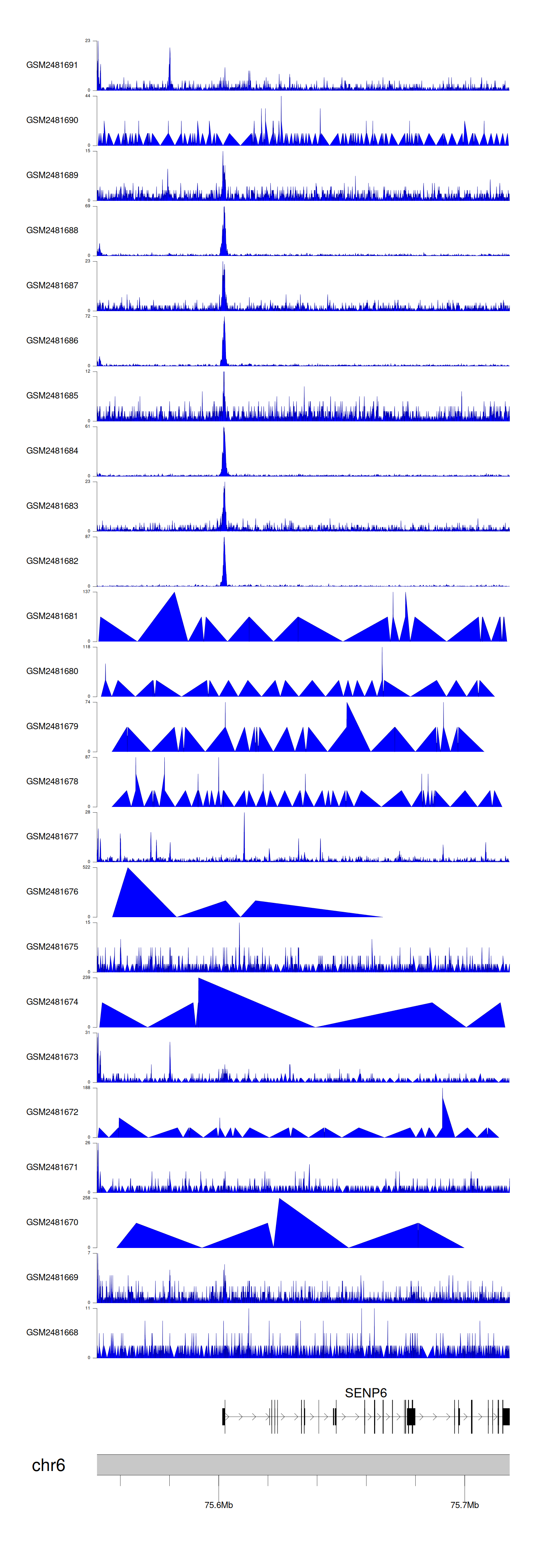> Dataset: GSE94732 - SENP6 peak across samples