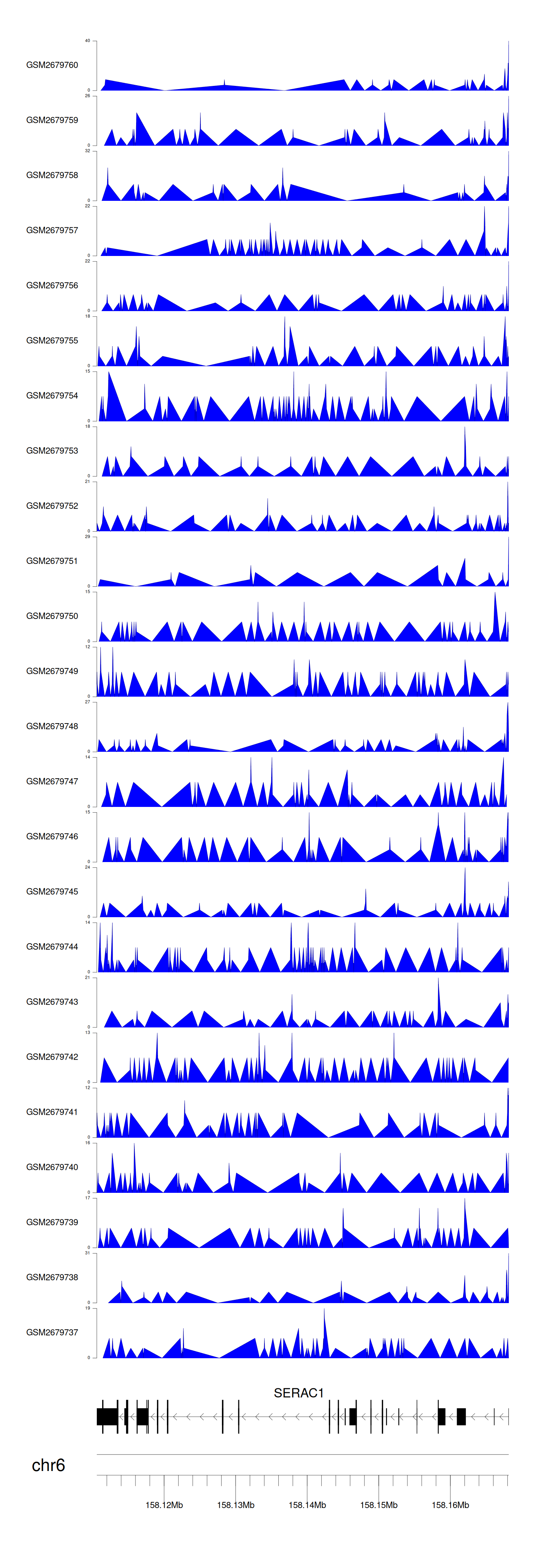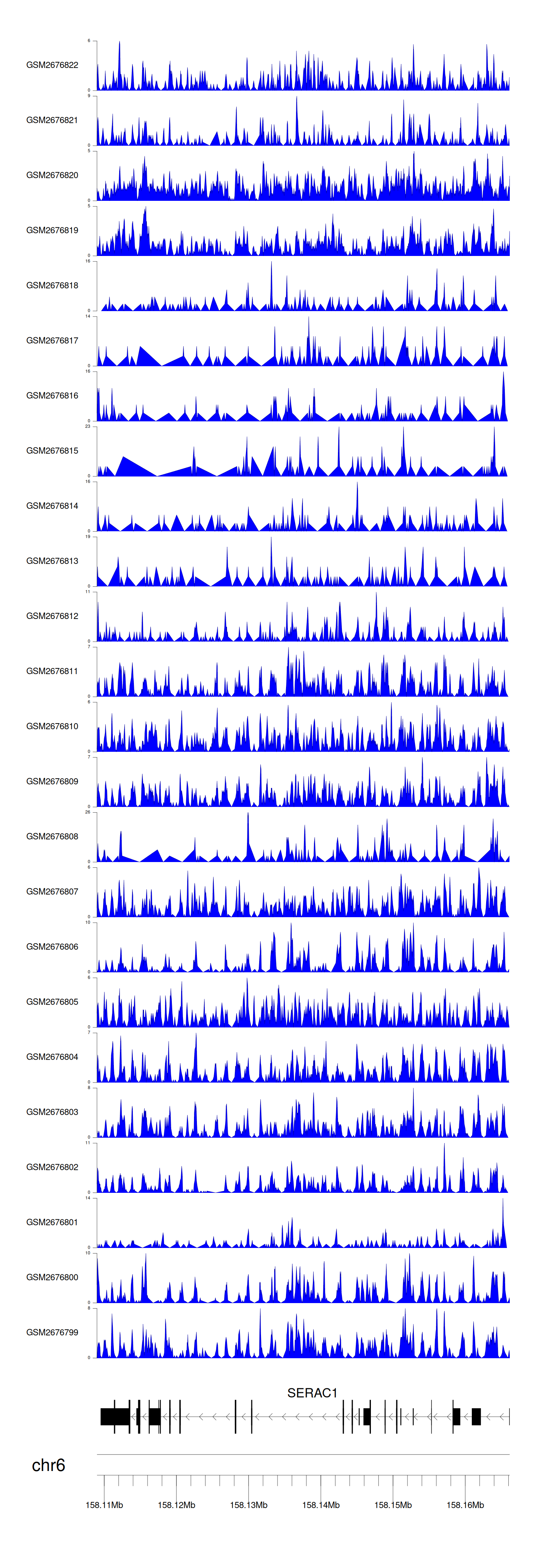 > Dataset: GSE100376 - SERAC1 peak across samples