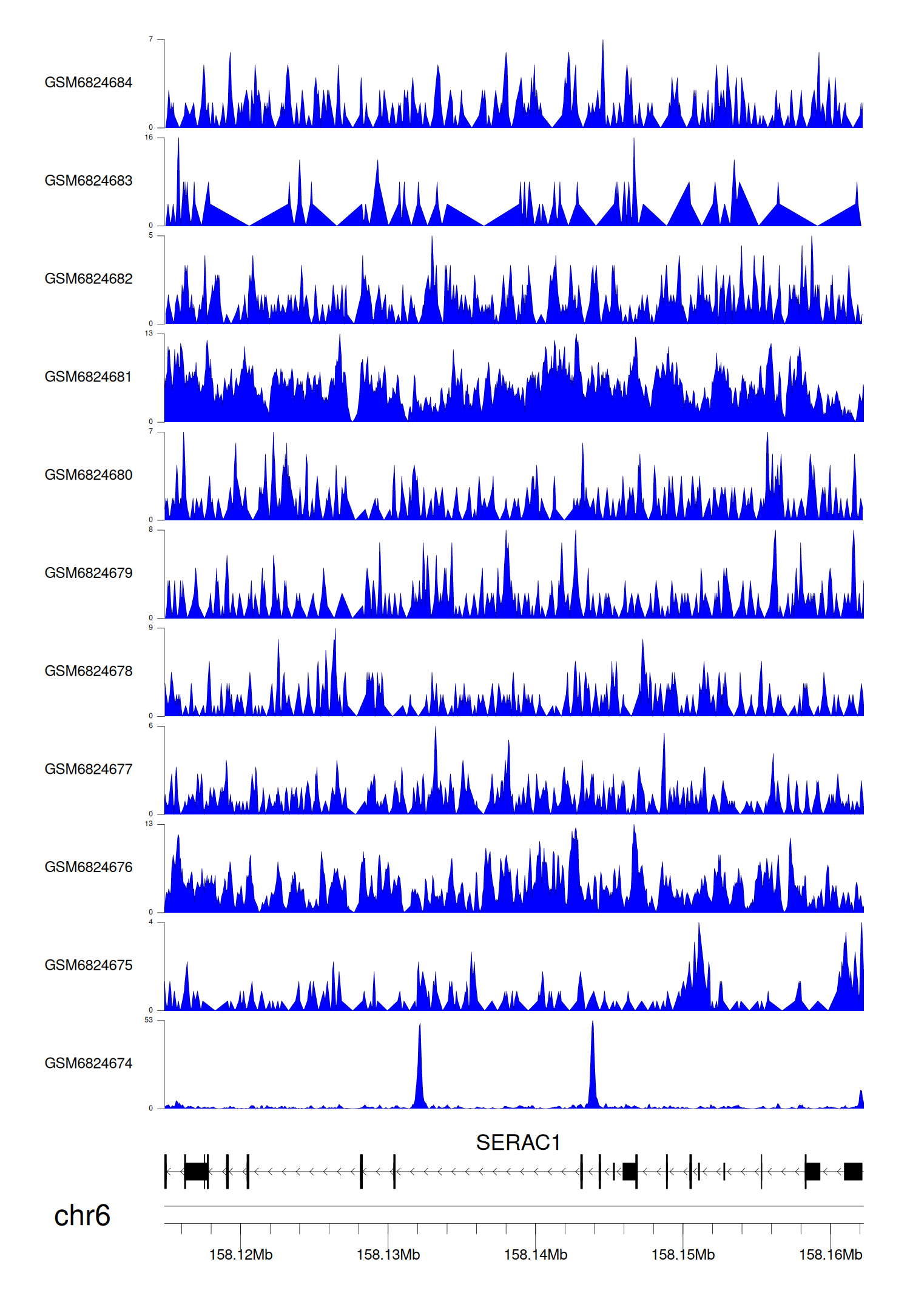 > Dataset: GSE144329 - SERAC1 peak across samples