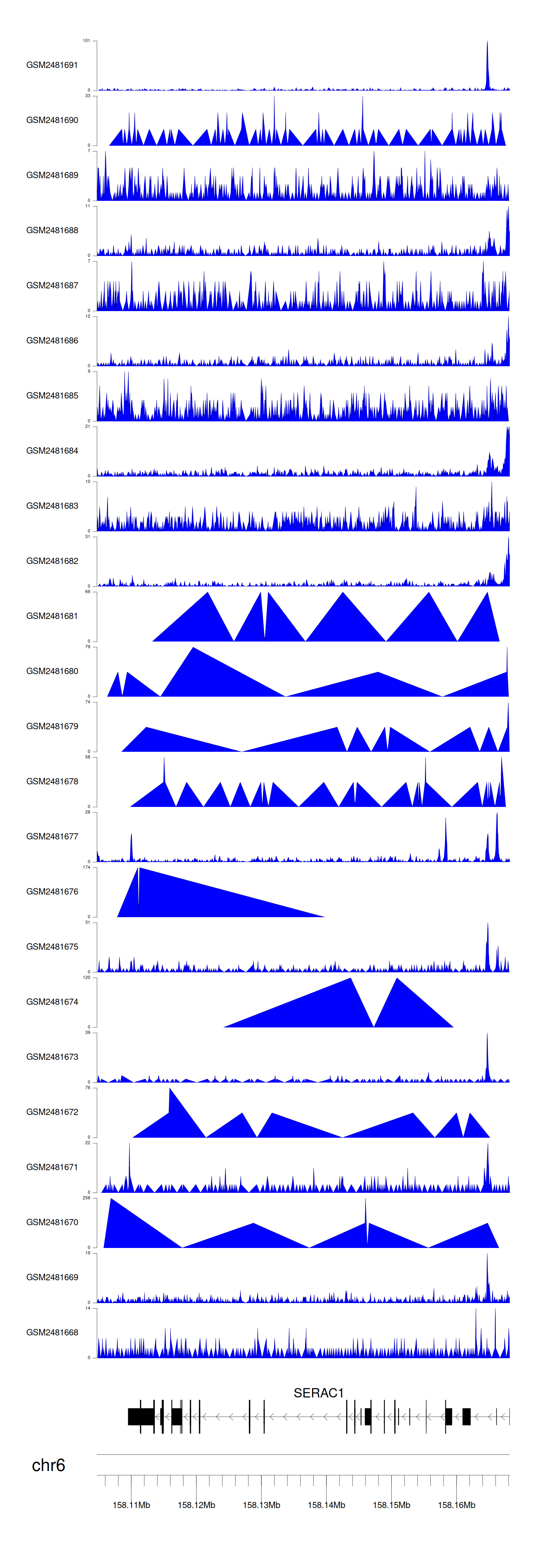 > Dataset: GSE94732 - SERAC1 peak across samples
