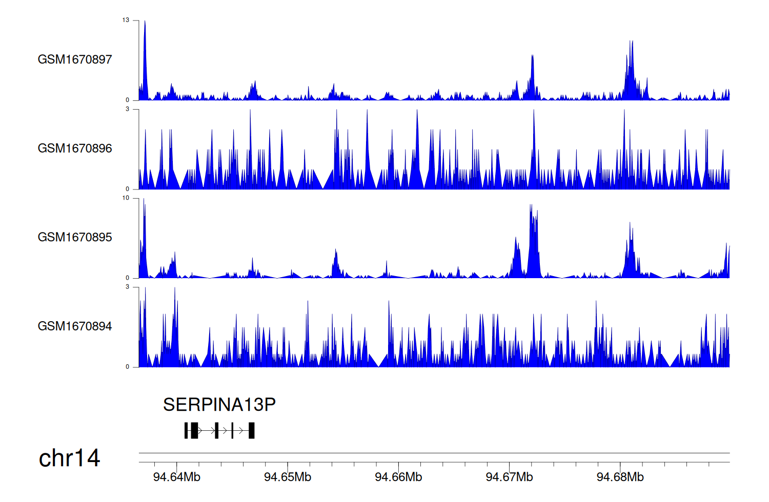 > Dataset: GSE100400 - SERPINA13P peak across samples