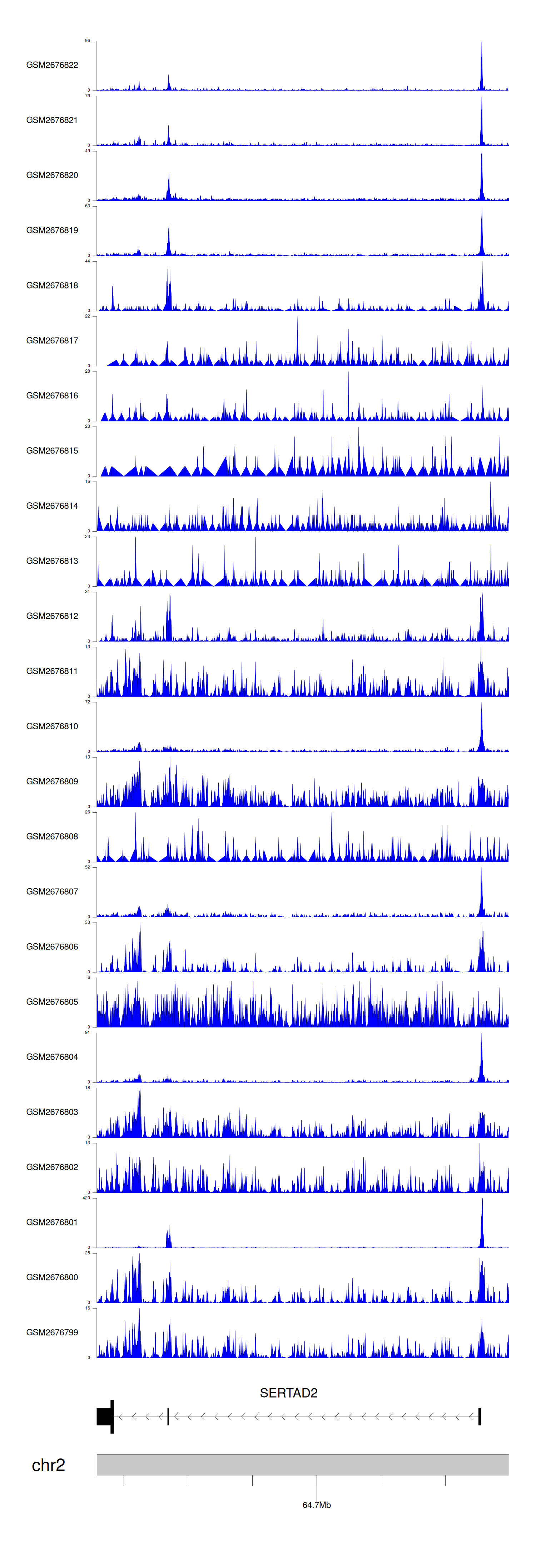 > Dataset: GSE100376 - SERTAD2 peak across samples