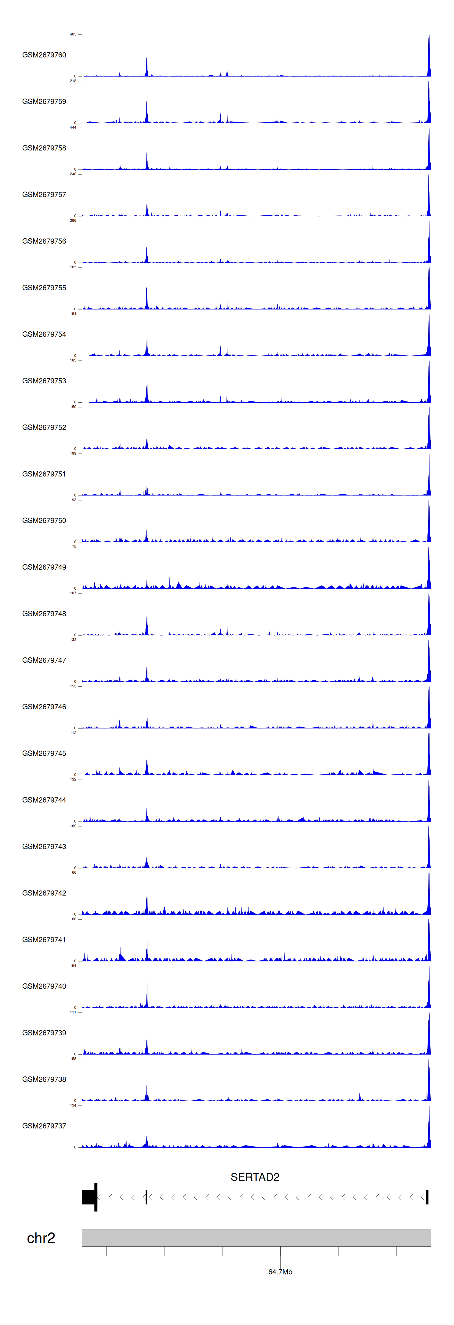 > Dataset: GSE165703 - SERTAD2 peak across samples