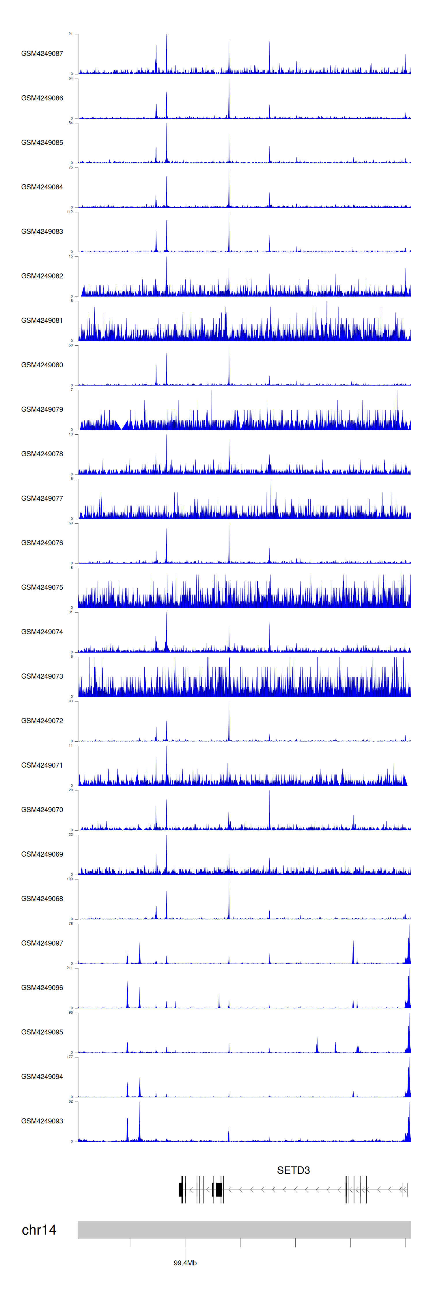 > Dataset: GSE143026 - SETD3 peak across samples