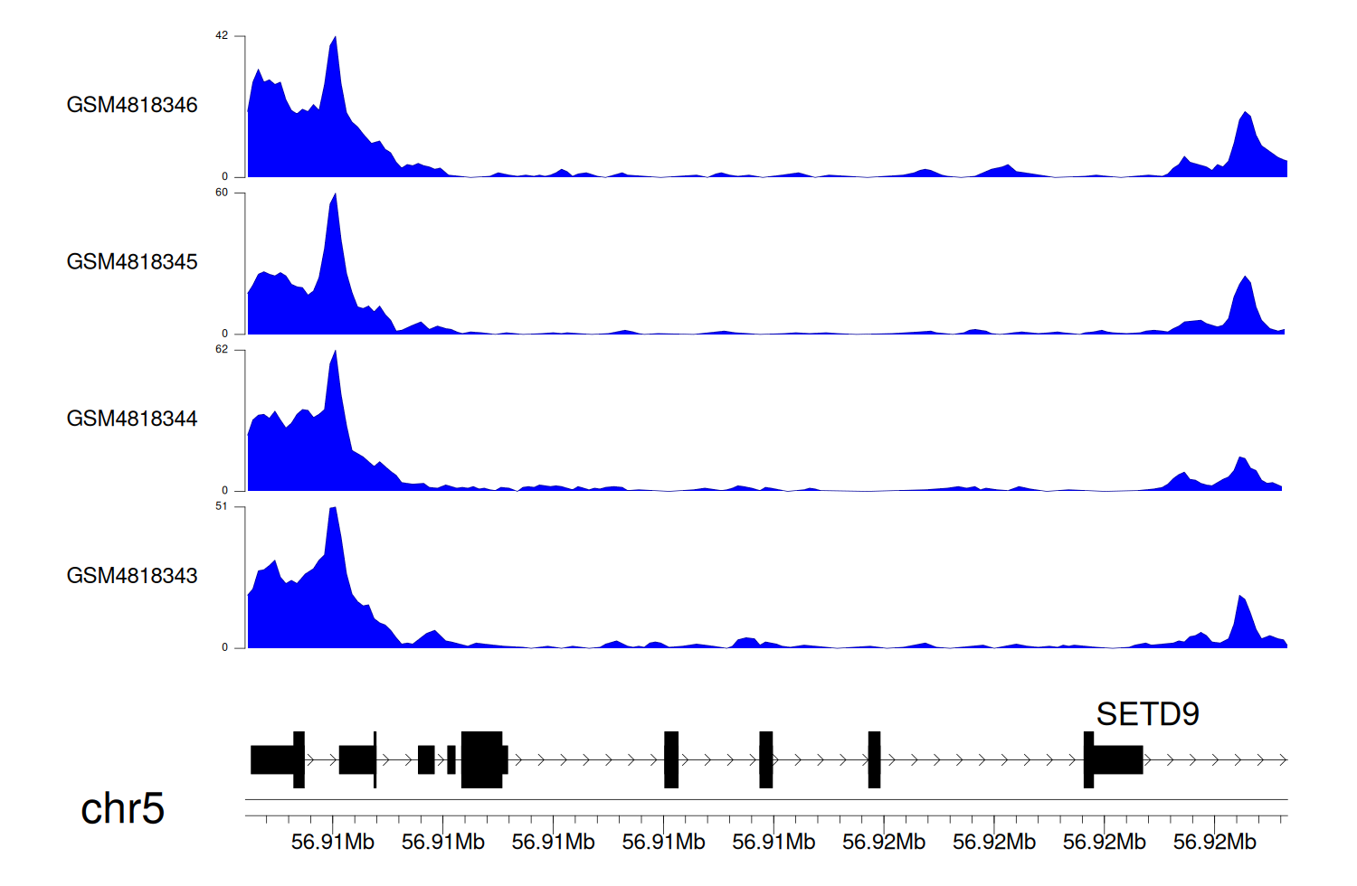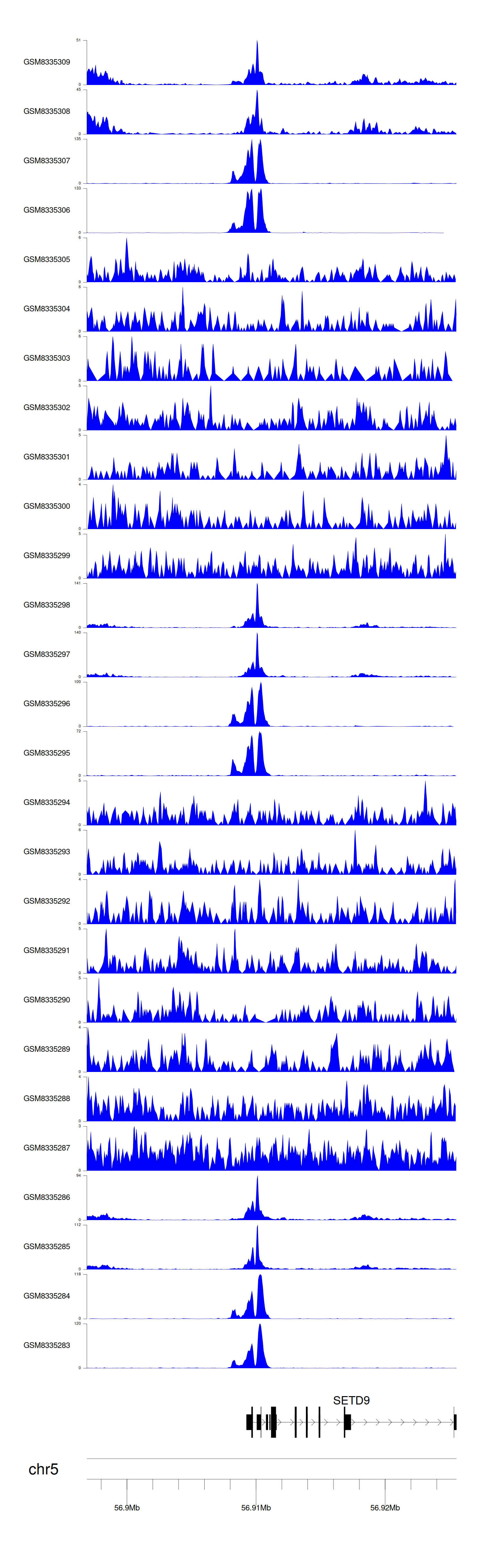 > Dataset: GSE131257 - SETD9 peak across samples