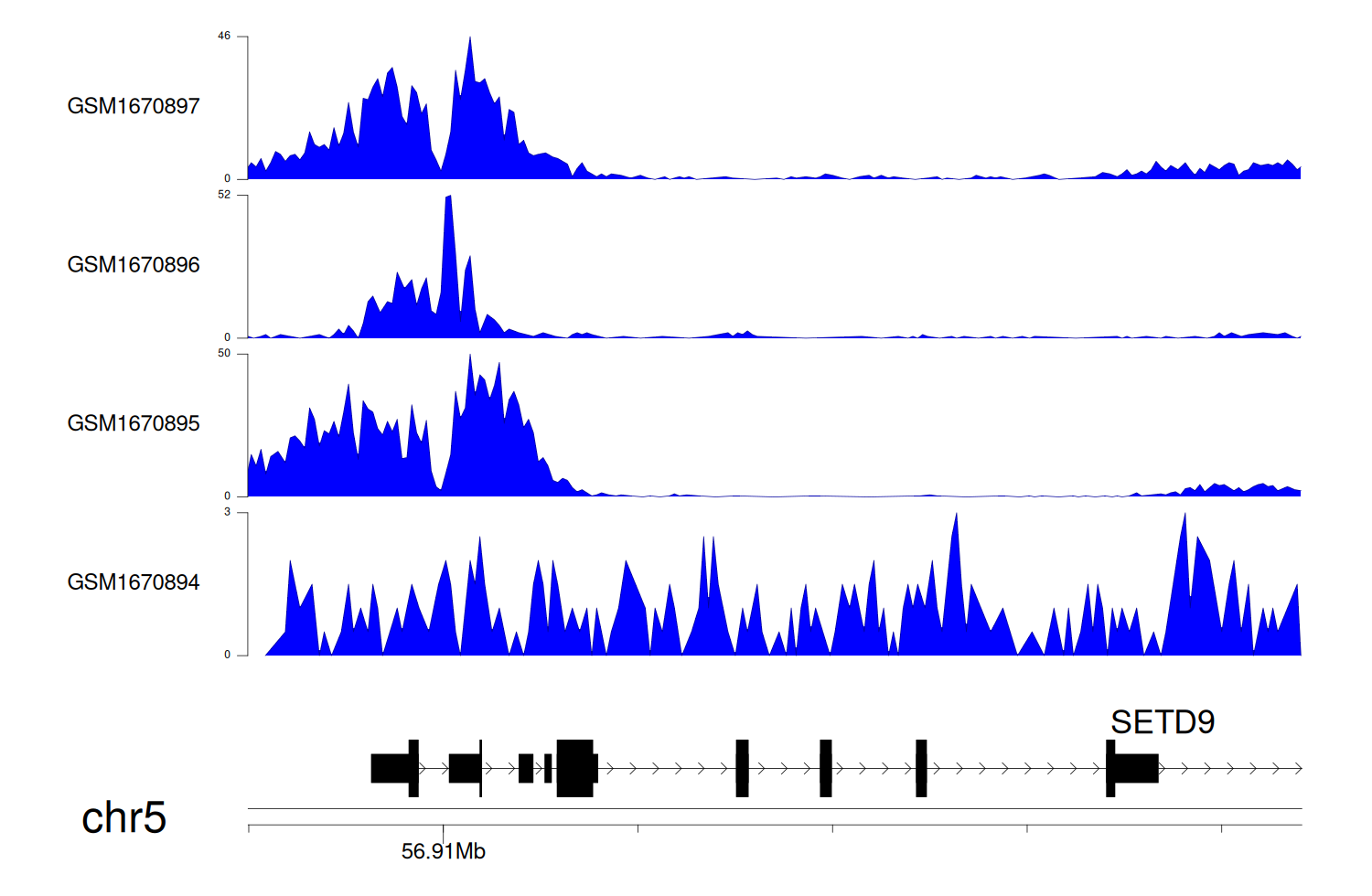 > Dataset: GSE68402 - SETD9 peak across samples