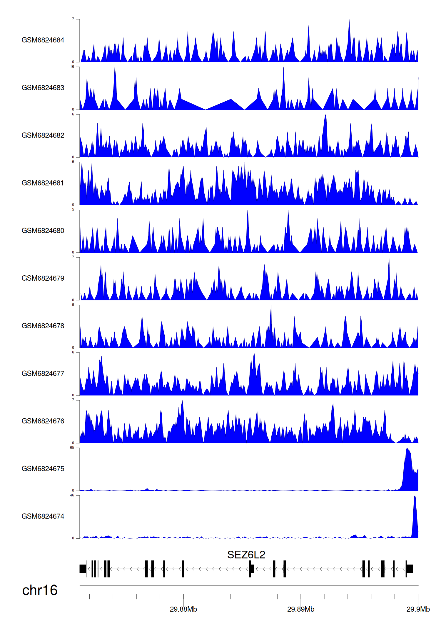 > Dataset: GSE165703 - SEZ6L2 peak across samples