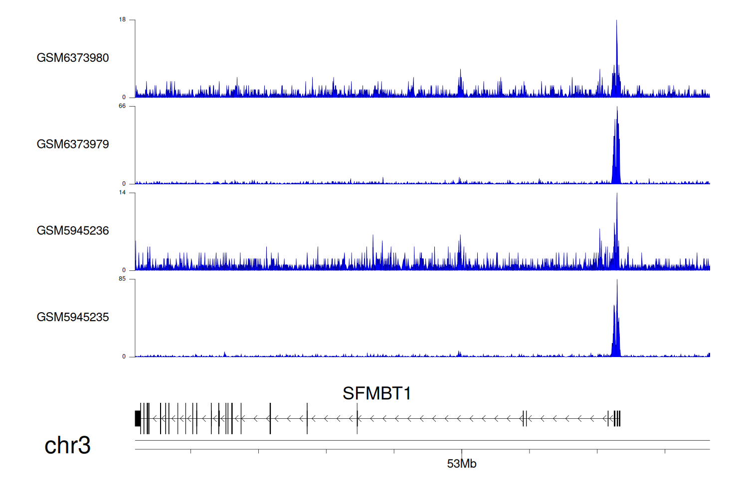 > Dataset: GSE246060 - SFMBT1 peak across samples