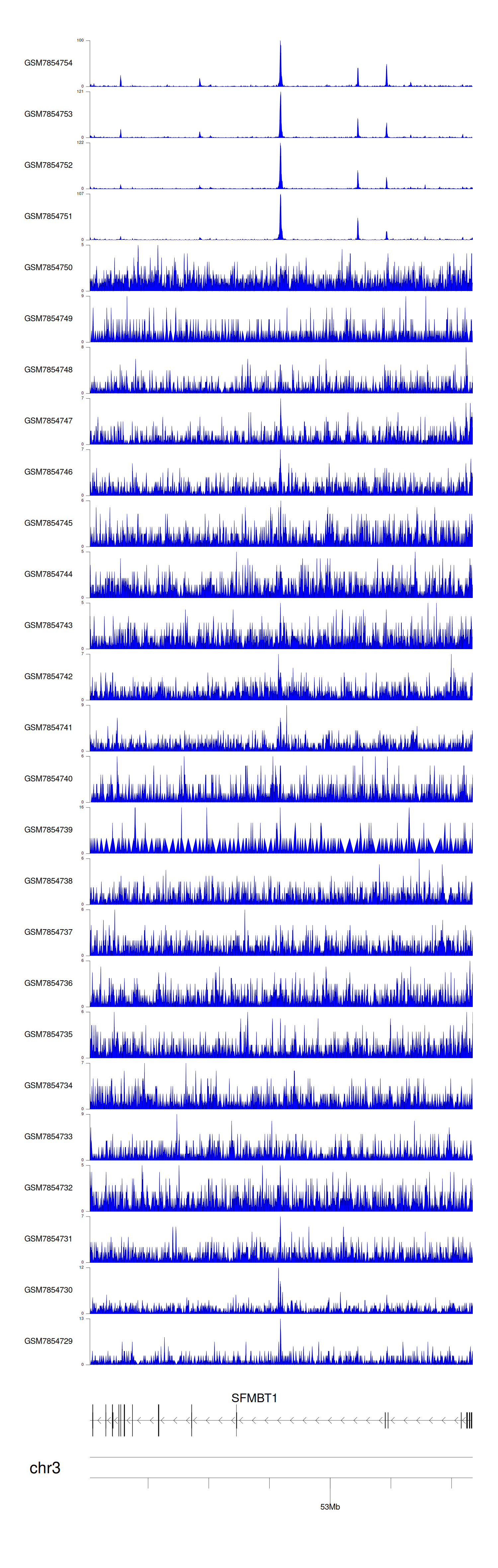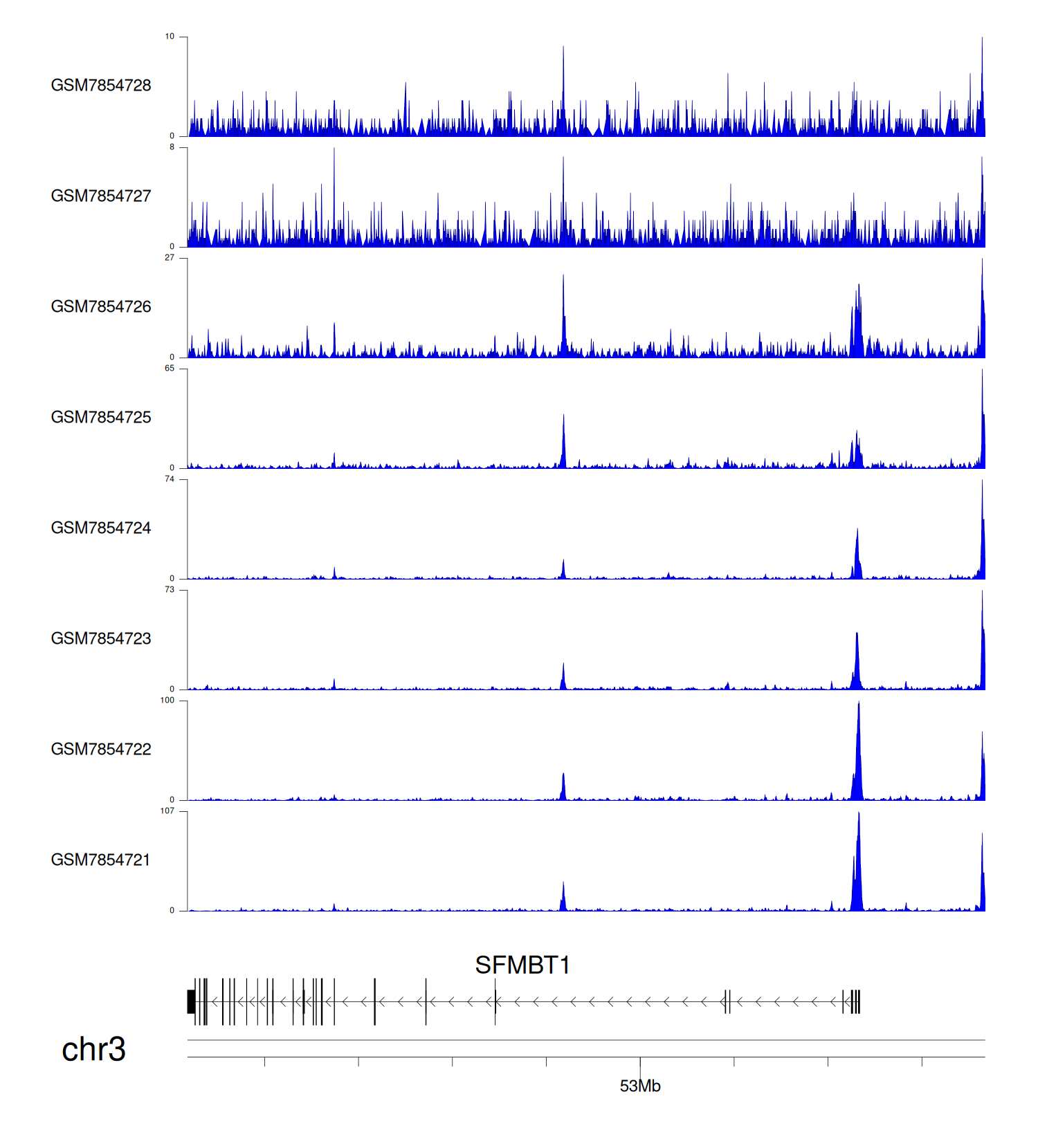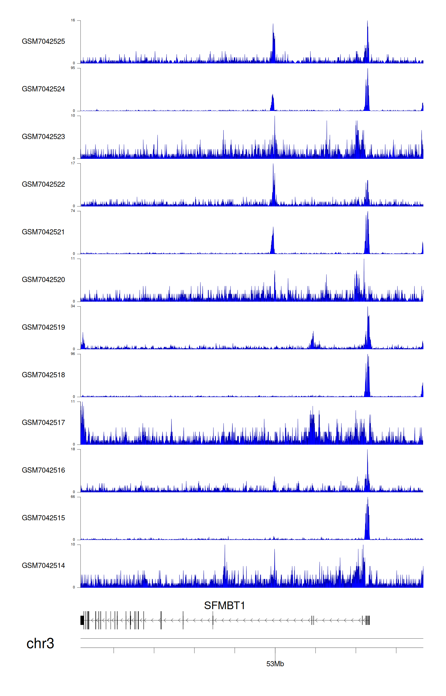 > Dataset: GSE198334 - SFMBT1 peak across samples